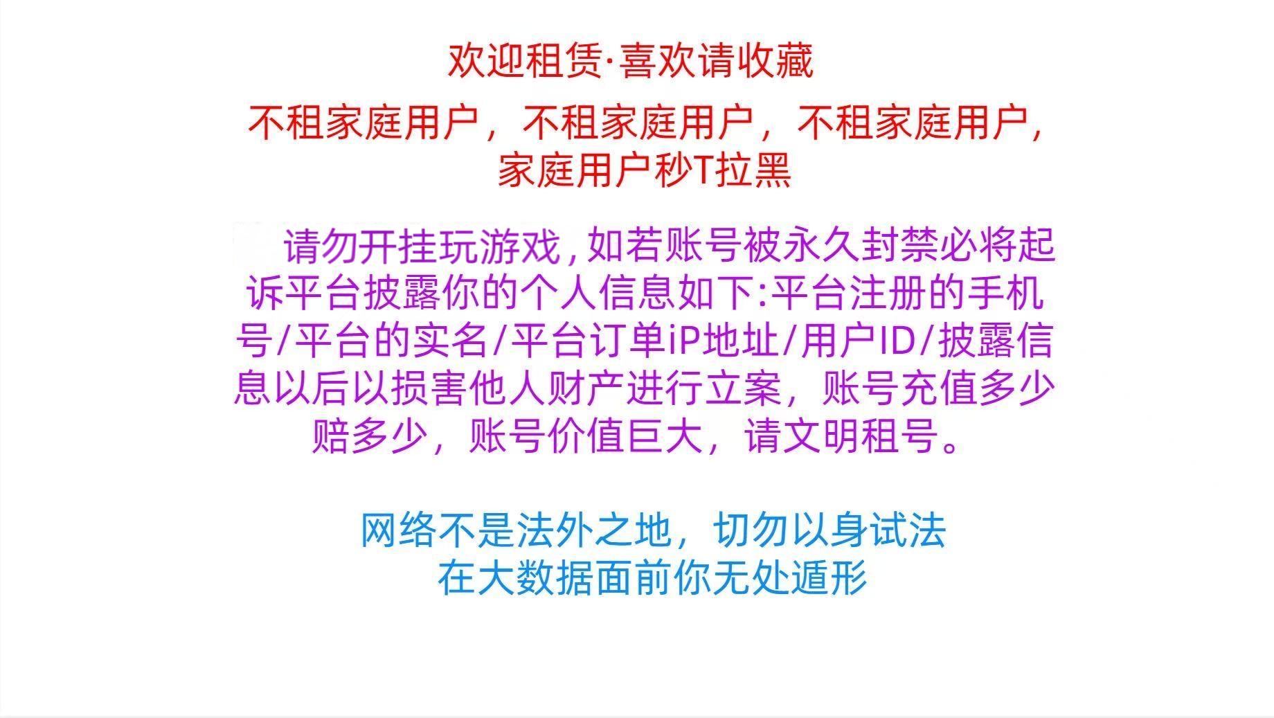 • 租号押金:0.0(订单结束后24小时退还)
