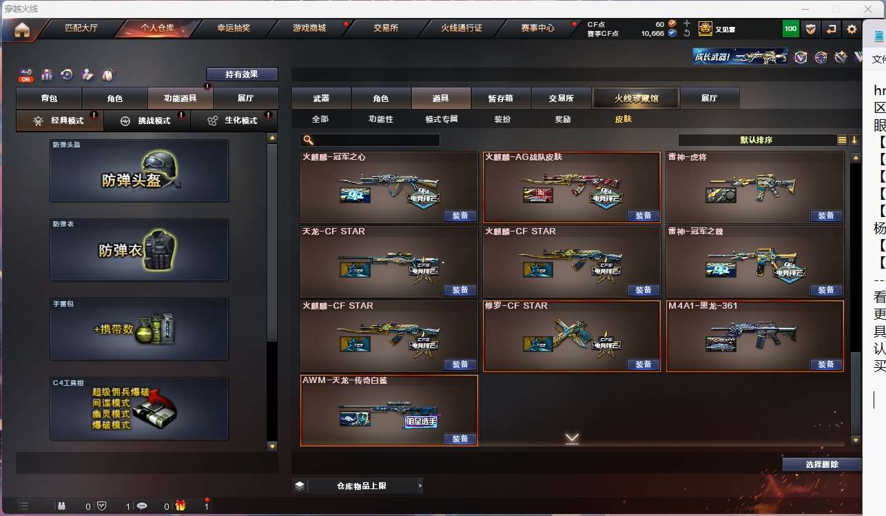 • 游戏区服:穿越火线 / 电信区 / 南方大区