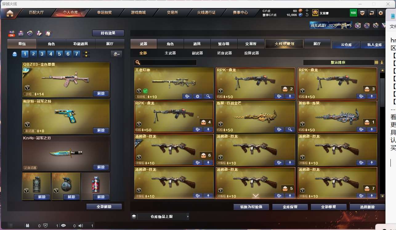 【亮点解析 幻神三件套 生化高配 冠军套】【m200幻神+音效卡+宠儿+丹凤+冠军之特+冠军之刃*2】【98k星神】【m200竞技荣光套 +usp雷暴+云悠悠】【王者幻神 】【6烈龙 盘龙*3 炼狱*2 死亡之眼 】【传说光耀】【王者白虎】【qbz金色蔷薇+卡+冠军之薇】【hk417朱雀】【火麒麟+卡+冠军之心】【黑龙】【雷神+卡+冠军之魄+n9皮肤】【黑骑士+卡】【毁灭+卡+sv16冠军+冠军之怒】【裁决+运输船】 【武器:天启 雷霆 王者之魄 王者之戮 王者之幻 王者冰魄 海王 】 【10手呛:修罗*4 天神 雷霆 usp雷暴 竞技荣光 王者之魂 冠军之特 】 【8刀具:屠龙*2 龙啸 竞技荣光 麒麟刺 王者之刺 尼泊尔雷霆 】 【8雷套:雷霆雷*7 竞技荣光雷】 【小人呛:雷神精英刀锋 裁决雪莉杨 】 【音效卡: 毁灭音效卡 火麒麟一系列 幻神音效卡 金色蔷薇音效卡 雷神音效卡 黑骑士音效卡 】 【四防角色:王者春 王者葵貂蝉】;USP-雷暴,柯尔特-冠军之特,Knife-冠军之刃,电竞教官-云悠悠,RPK-盘龙,QBZ03-金色蔷薇,M200-幻神,