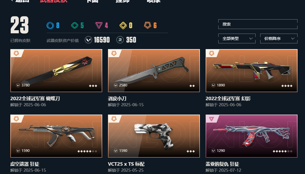 首页 > 租号大厅 > 无畏契约-wegame > wegame/wegame > 当前段位:黄金二 精品皮肤 盖亚 22冠军套 剥皮小刀 虚空 天将戍卫 VCTxTS 盖世鬼魅紫金