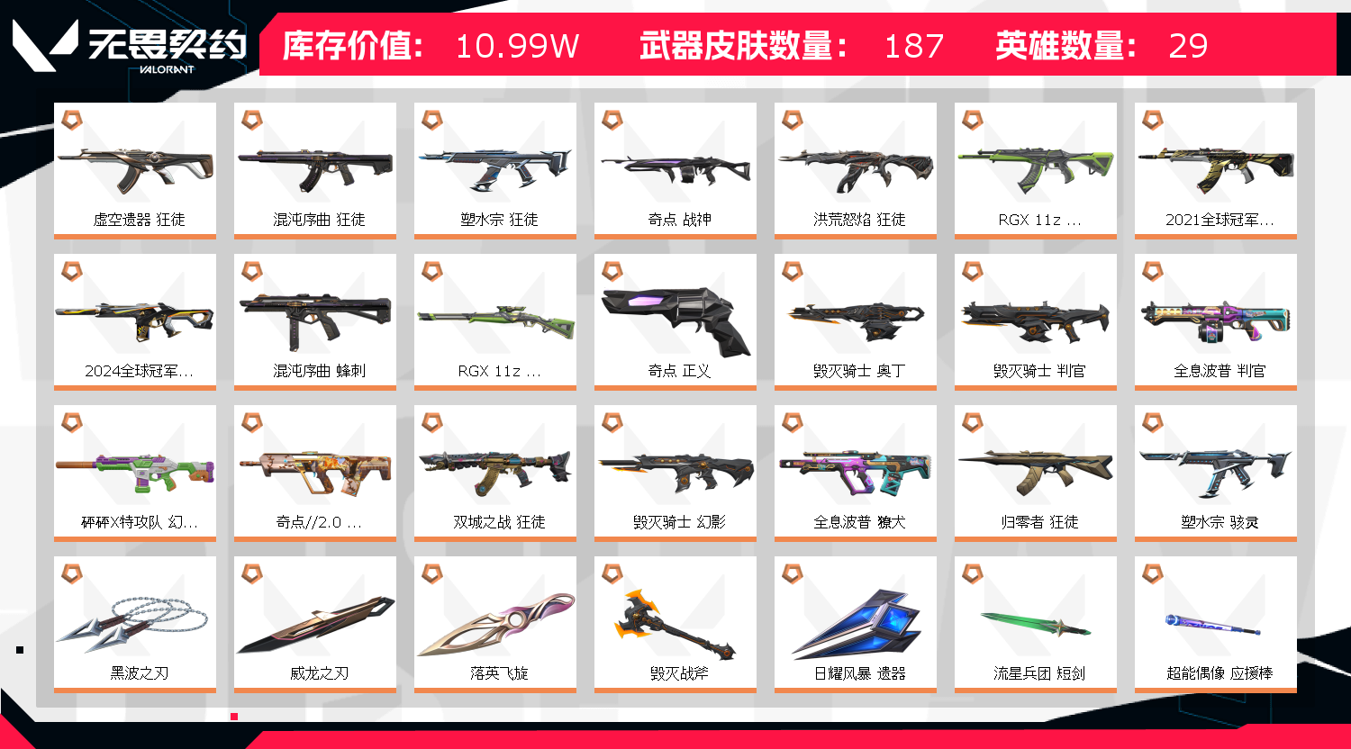 首页 > 租号大厅 > 无畏契约-wegame > wegame/wegame > 11W库200皮冻结秒解✨21+22+24冠军套包爽的✨24狂徒15幻影22近战主战全✨喜欢点点关注