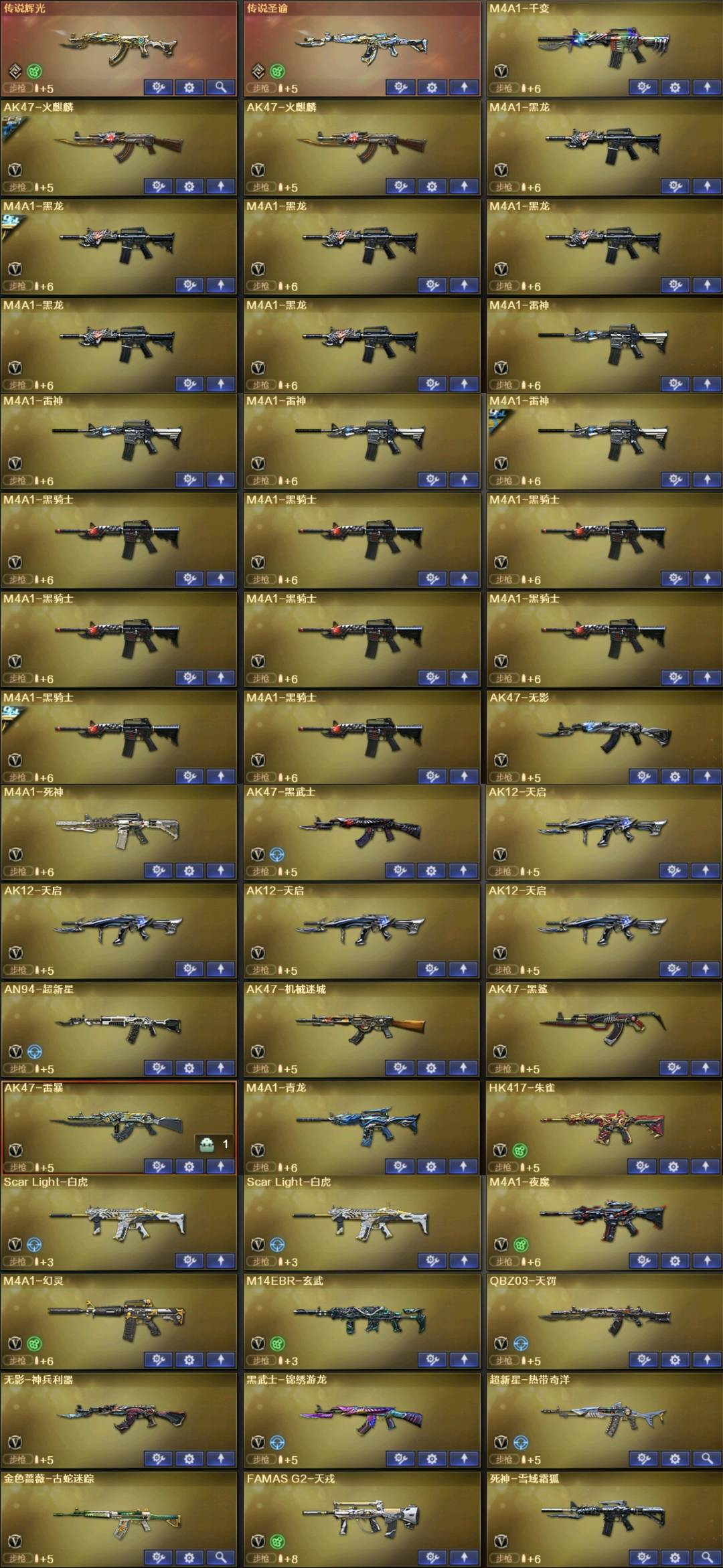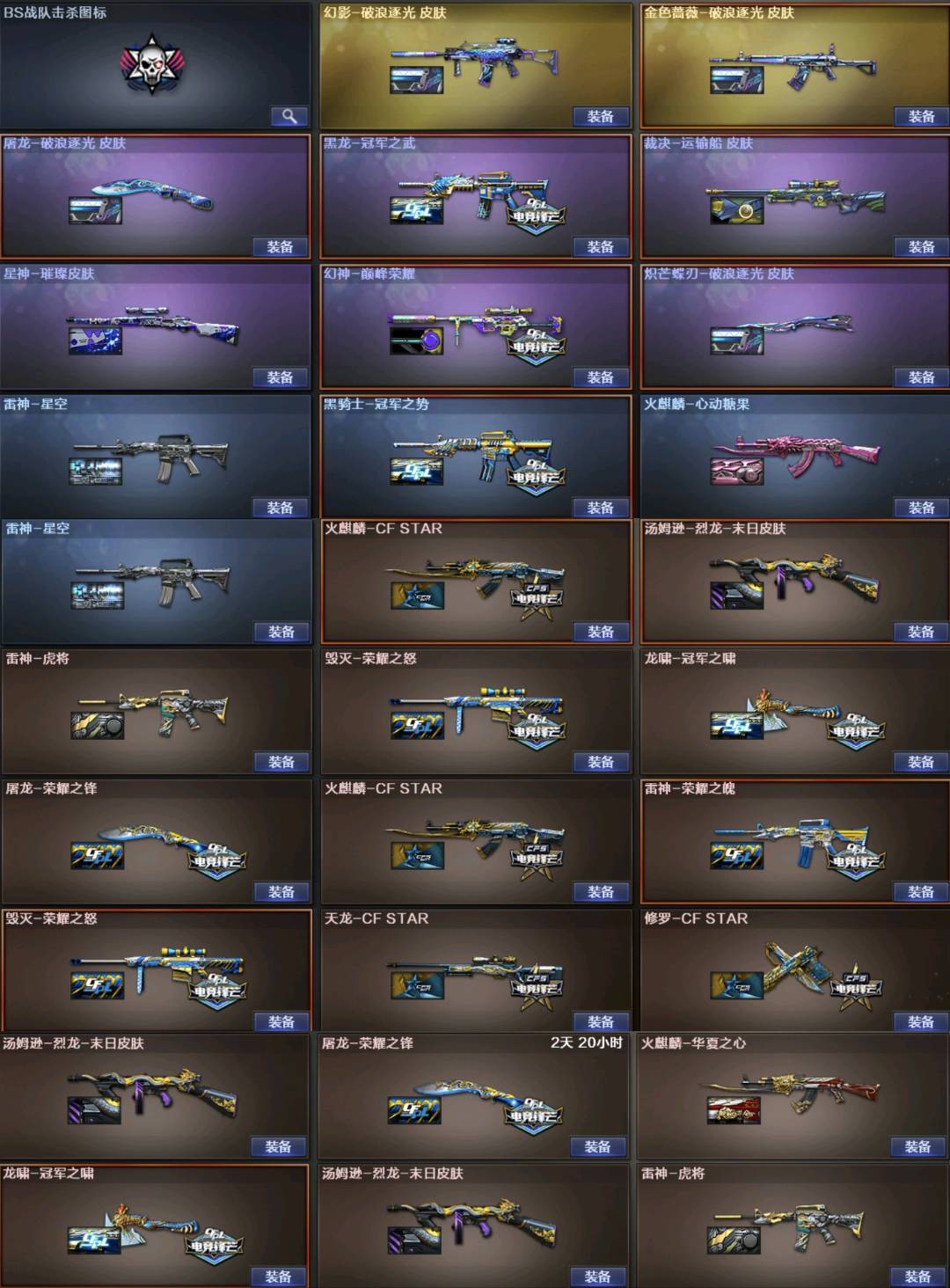 法玛斯天绒,全生化皮肤,玄武,极光音效卡,6烈6盘,圣泉猎手;USP-雷暴,柯尔特-冠军之特,炽芒蝶刃,传说星骇,传说女帝,隼,电竞教官-云悠悠,