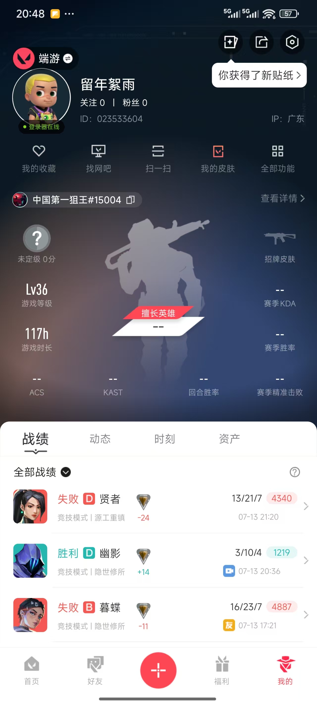 • 游戏区服:无畏契约-wegame / wegame / wegame