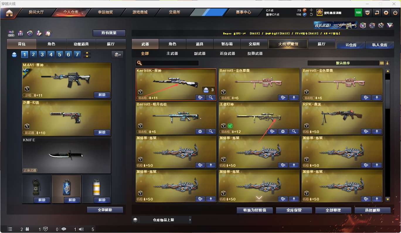 【m200-幻神+幻神-冠军之幻】 【王者幻神】 【传说圣灵】 【幻兽雷*1】 【qbz金色蔷薇】 【雷霆套】 【荣耀世冠套】 【火麒麟+音效卡+火麒麟-冠军之心】 【雷神+音效卡+雷神-荣耀世冠ag+雷神-荣耀之魄】 【黑骑士】 【毁灭+音效卡+毁灭-冠军之怒+毁灭-荣耀之怒】 【极光】 【裁决】 【王者之魄】 【无影 死神 黑武士 天启 超新星 hk417-朱雀】 【生化 6炼狱 6烈龙】 【12手呛 修罗*5 天神*2 cop雷霆 】 【13近战 屠龙*6 龙啸 王者之击】 【手雷 雷霆雷*6 夜魔雷*3】 【四防 王者瞳闭月羞花 职业经理】;