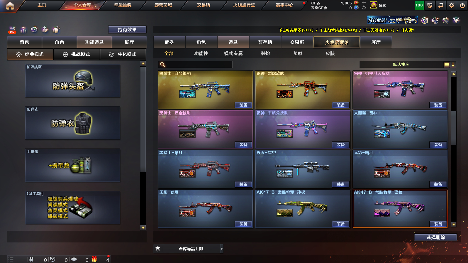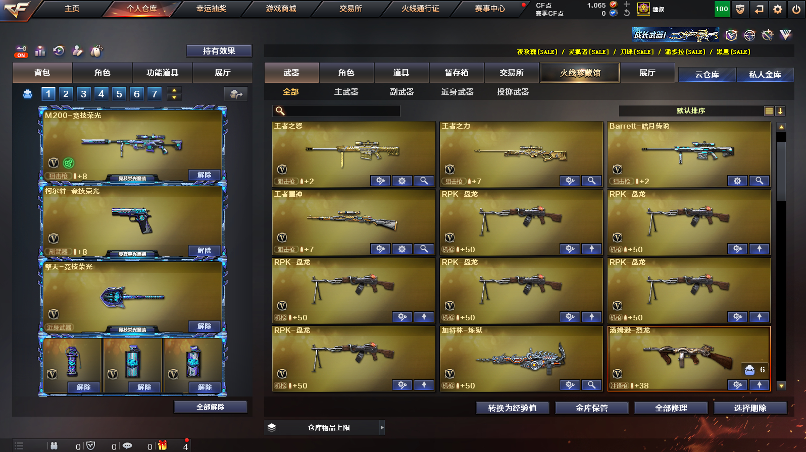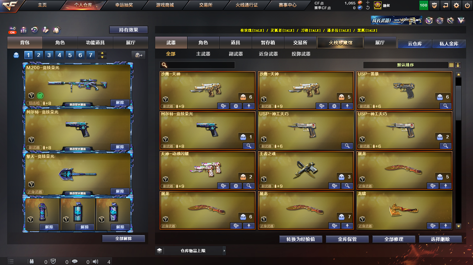 《m200幻神+幻神音效卡》《王者星神》《竞技荣光》《裁决》《王者之力》《王者之怒》《usp雷暴 柯尔特荣耀荣光 usp神工天巧》《白虎电玩蓝兔》《朱雀》《青龙》《雷霆套》《m4雷霆》《竞技荣光套》《qbz金色蔷薇》《王者之心/影/魄/势》《毁灭》《死神》《火麒麟雷神》《火麒麟》《雷神》《黑龙》《黑骑士》《6盘龙6烈龙》《毁灭征服者》《激光毁灭者》《神圣爆裂者》《火麒麟灵狐 王者barrett英勇金戈 斯泰尔蝴蝶》《云悠悠 晴雅 魅影 乔伊教练满配 王者玲珑小乔 王者涂鸦 职业选手》《qbz金色蔷薇音效卡 毁灭音效卡 黑骑士音效卡 雷神音效卡 火麒麟音效卡》《雷神烈虎 黑骑士白马银呛 黑骑士摸金校尉 雷神机甲刑天 雷神宇航兔 火麒麟ag战队皮 金色蔷薇呛娘阿敏》a背包套装扩展券《永久ac 永久工具钳 永久手雷包》;USP-雷暴,电竞教官-云悠悠,晴雅,RPK-盘龙,QBZ03-金色蔷薇,M200-幻神,
