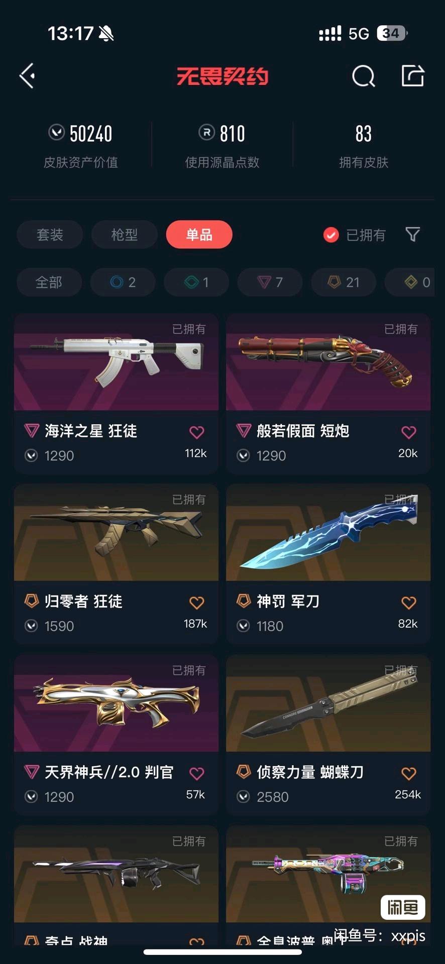 首页 > 租号大厅 > 无畏契约-wegame > wegame/wegame > ⚡️83款精品好皮⚡️破败套和塑水套⚡️五万库存⚡️神罚军刀⚡️男大一手号 ⚡️带妹必选⚡️