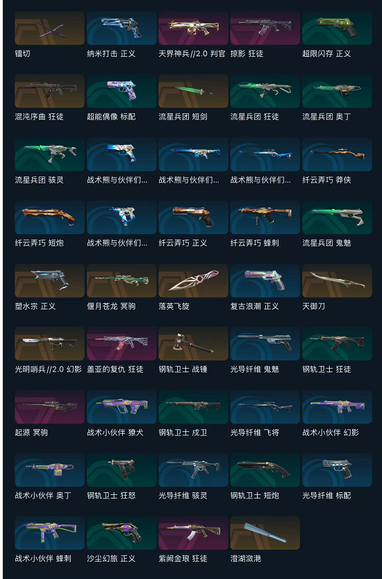 4.2万资产西部未来套镭切VCT爪刀塑水宗正义天御刀钢轨卫士战锤起源冥驹紫阙金琅狂徒天界神兵判官;西部未来 奥丁,镭切,VCT 2025 爪刀,盖亚的复仇 狂徒,掠影 狂徒,紫阙金琅 狂徒,混沌序曲 狂徒,