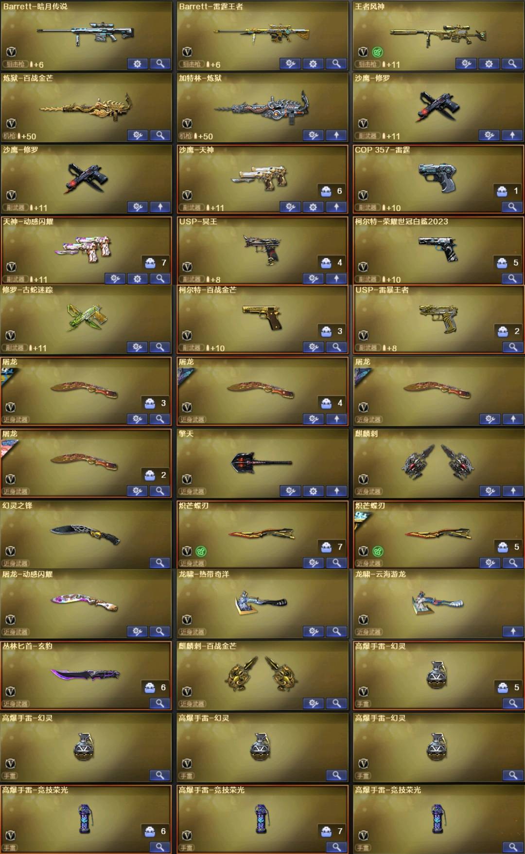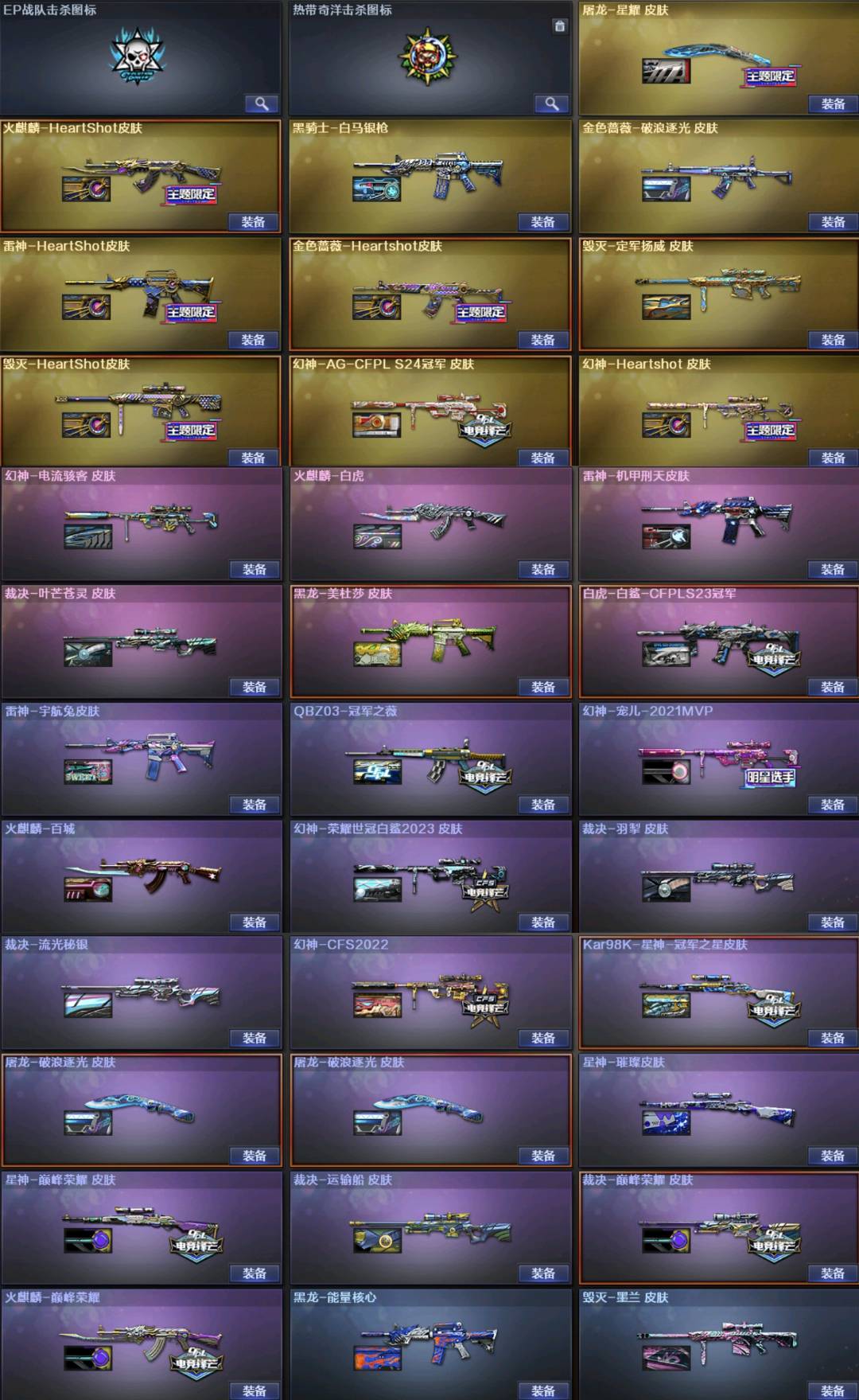 。。。。。。;USP-雷暴王者,柯尔特-荣耀世冠白鲨2023,炽芒蝶刃,传说星骇,隼,QBZ03-金色蔷薇,G36C-幻影,