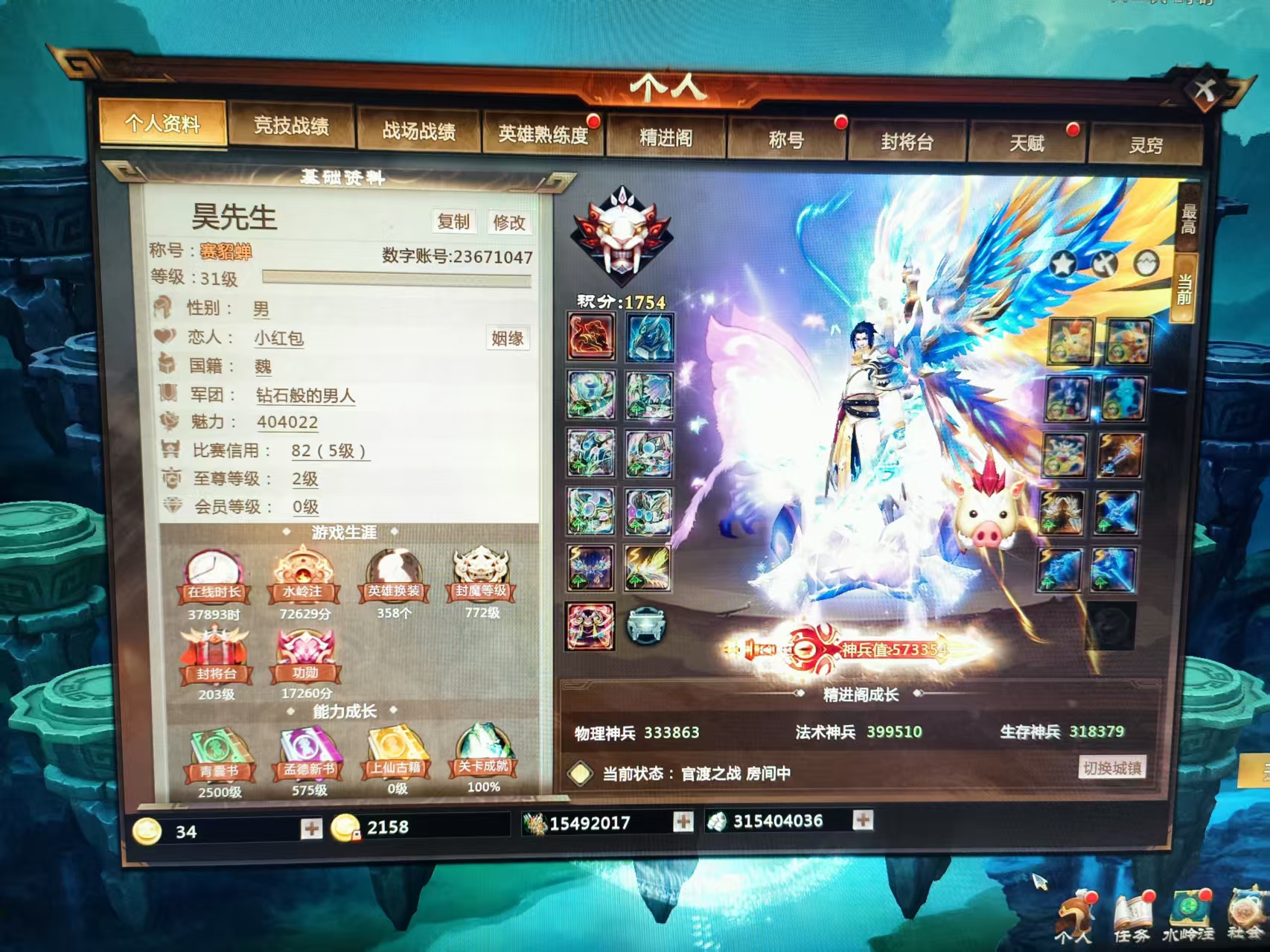首页 > 租号大厅 > 梦三国(电魂) > 电魂/全区服 > 至尊2 会员8 65万神兵竞技老号 绝版玩具 士兵兵粮充足