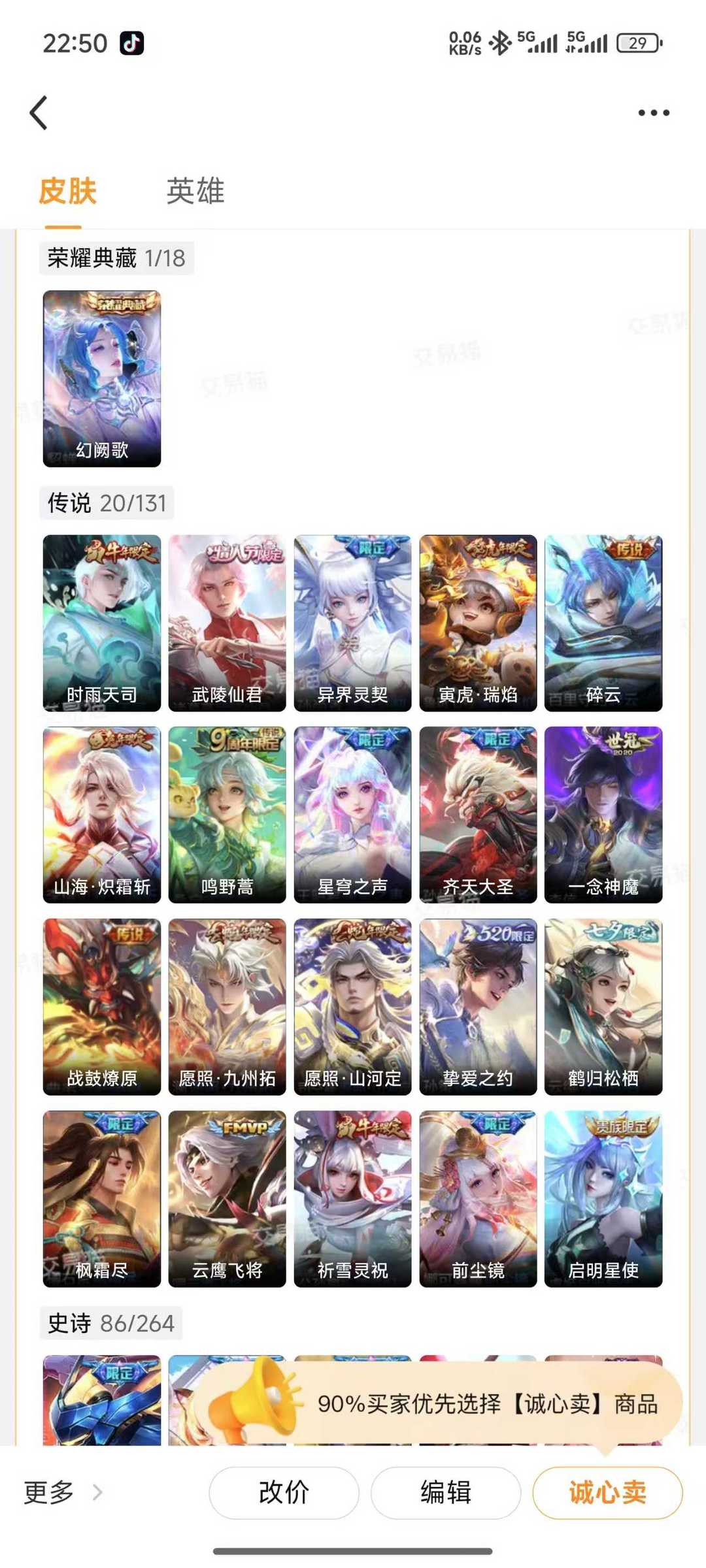【非沄直接上号】极品V10★三历史国标★430皮★六典藏★诸葛亮新典藏★虎年五限定★鸣剑戈影★活力突击️★多限定