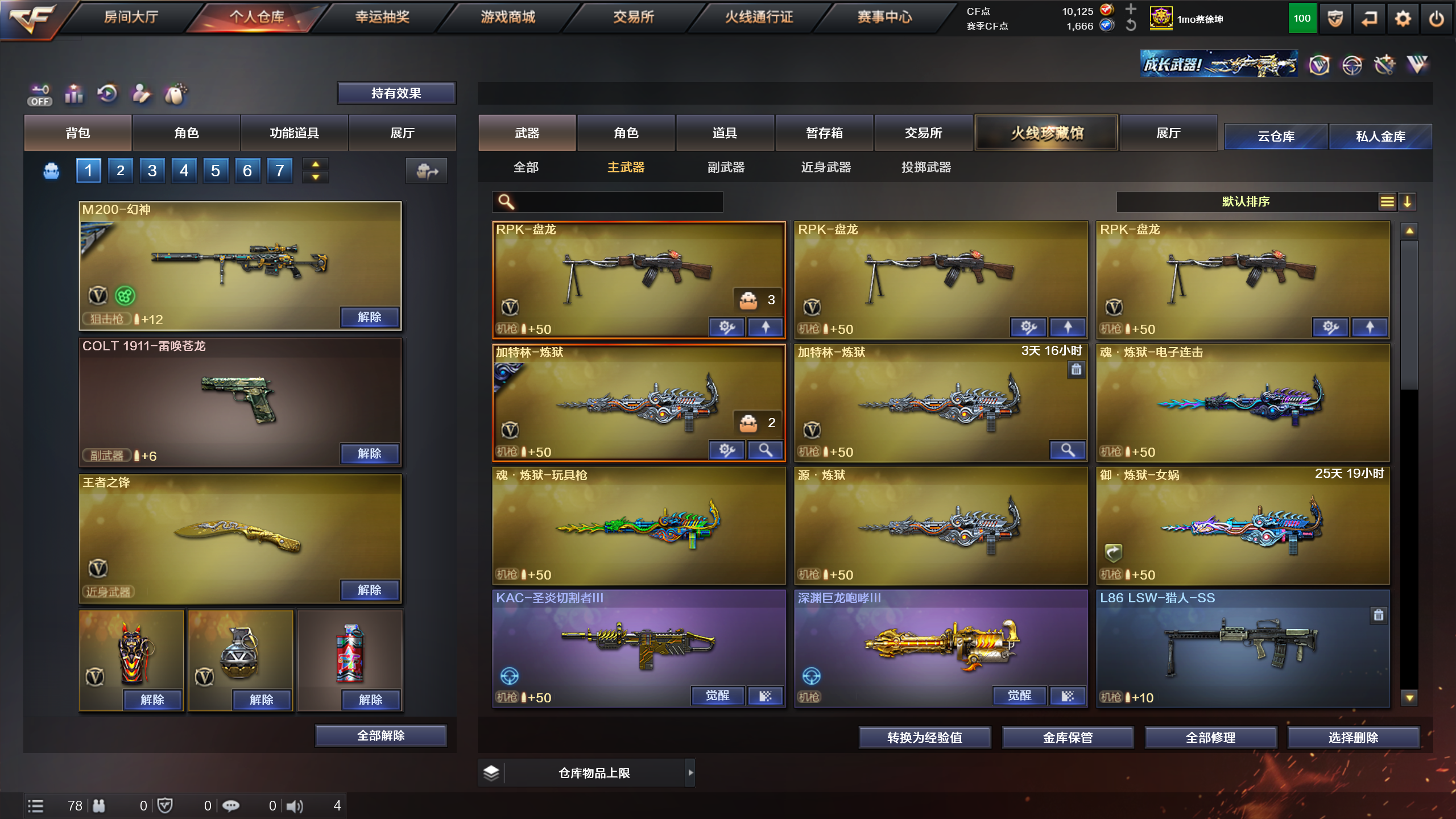 具体请看截图 可到官网或者手机app下单 机器自带的价格抬的很高望各位租号老板知道一下;炽芒蝶刃,隼,RPK-盘龙,QBZ03-金色蔷薇,M200-幻神,Kar98K-星神,