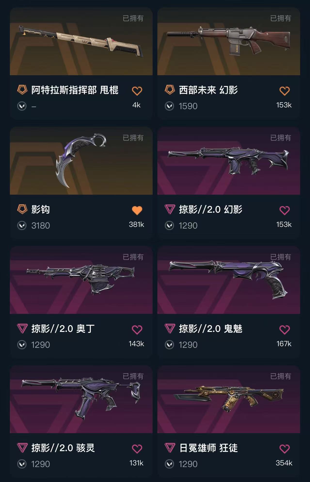 冻结秒解✨可排✨掠影2.0套✨影钩✨混沌序曲狂徒✨离子2.0狂徒✨显卡爪刀✨超时空卫队鬼魅