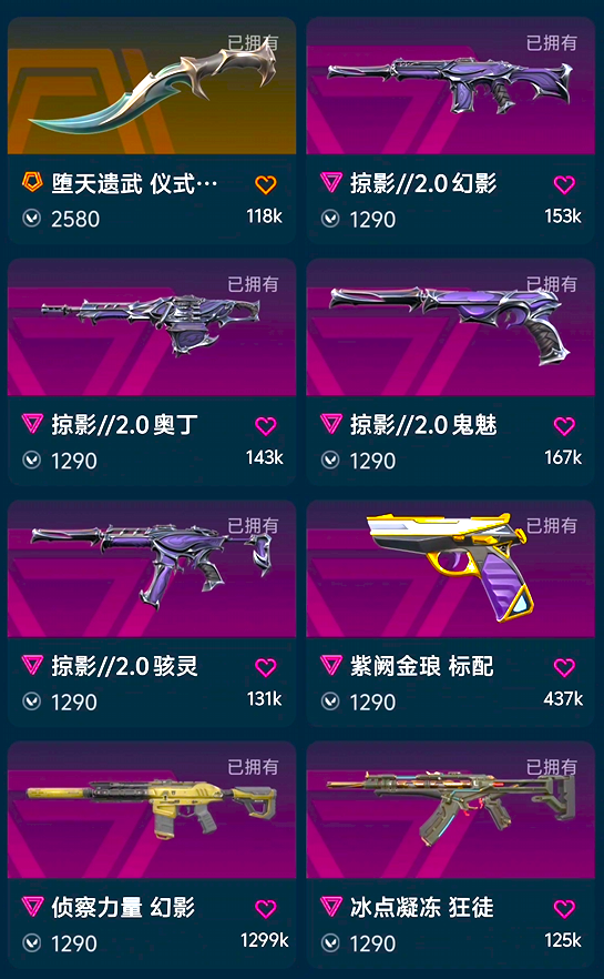 冻结秒解✨可排✨掠影2.0套✨影钩✨光荣异象狂徒✨RGX显卡狂徒✨威龙之刃✨侦察力量幻影
