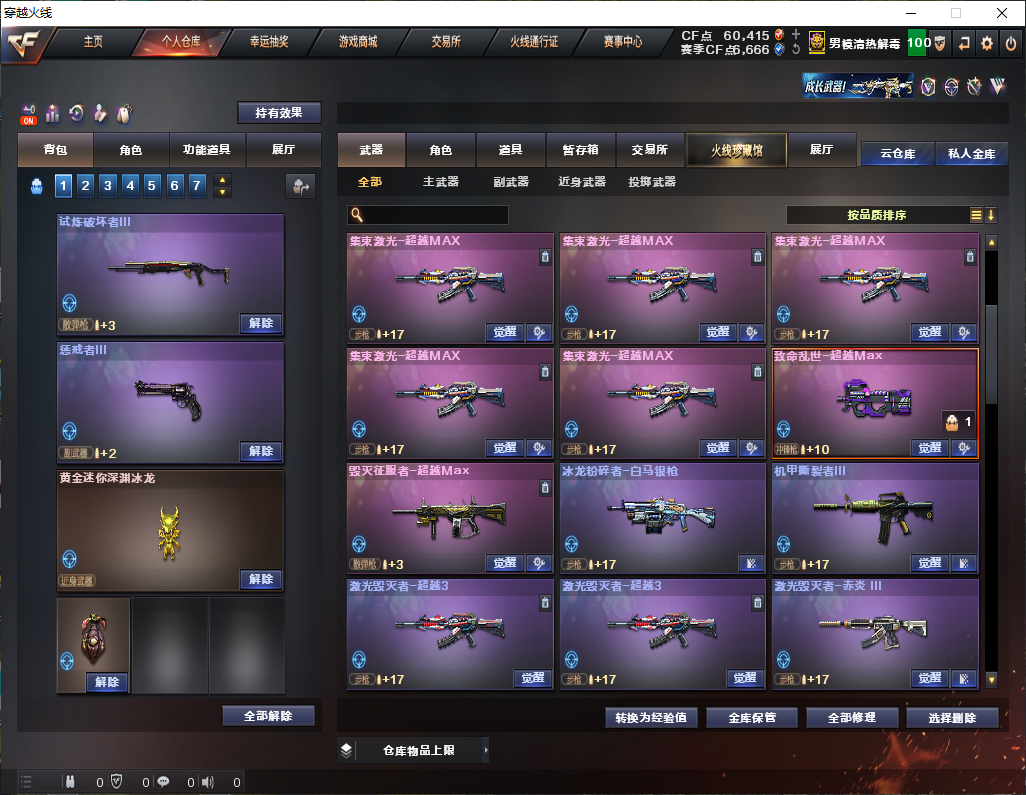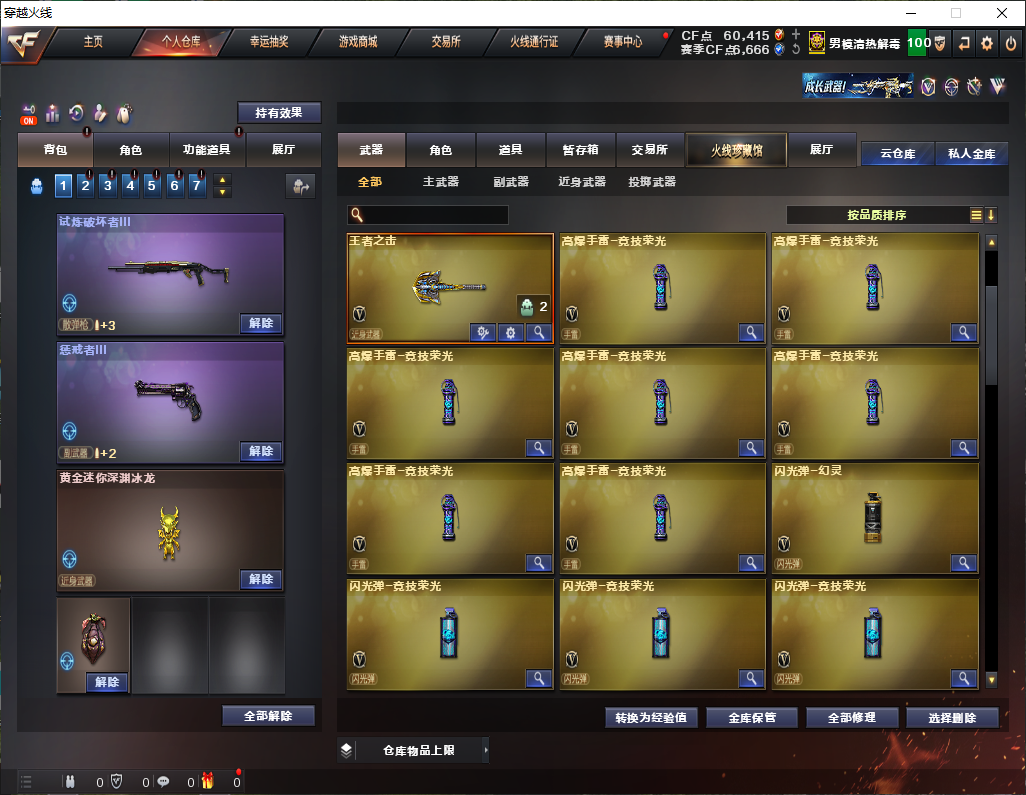 【主武器】M200-幻神/M200-幻神竞技荣光/王者星神觉醒版/传说梦魇/传说夜影/传说暗裔/白虎/白虎之魄觉醒版/炼狱/毒蜂/⑥烈龙/炼狱/炼狱风暴/千变/②火麒麟/黑龙/雷神/③黑骑士/无影/死神/超新星/武圣/机械迷城/玫瑰精灵/蔷薇qbz/烈火动感闪耀/王者之心觉醒版/②王者之势觉醒版/王者冰魄觉醒版/王者炎心觉醒版/白虎电玩蓝兔/毁灭/极光/裁决/暗月传说大炮/王者之决觉醒版/金色蔷薇-空/炼狱小刚/⑤集束激光超越Max/致命乱世超越Max/寒冰征服者超越Max/机甲撕裂者3/激光毁灭者3/圣炎切割者3/末日审判者3/封神逐风者3/深渊巨龙咆哮3/金魔/神圣爆裂者+末日3/试炼破坏者3/死亡之眼庆典CFS2021/EVO赤血龙魂/ 【副武器】柯尔特-竞技荣光/USP-雷暴/④修罗/③天神/武圣手枪/天神动感闪耀/ 【近身武器】王者之峰觉醒版/王者之击觉醒版/擎天竞技荣光/屠龙/龙啸/②擎天/②麒麟刺/屠龙动感闪耀/迷你宝贝/金刚伞+电玩红兔/黄金生化钩/黄金迷你深渊冰龙/黄金迷你裂空之翼/迷你牛牛裂空之翼波特博士白狐冰龙/ 【投掷武器】⑦高爆竞技荣光+⑦烟闪/手雷动感闪耀/生化手雷 【角色】电竞教官云悠悠+四防/鹰+四防/荒漠琉璃+三防/枪娘樱+三防/雨棠+三防/月兔特工+三防/樱/瞳/魅影/战地烈狐/乔伊教练/王者凌霄+四防/王者零华冠丽服/修道士/灵狐者黄金海岸/职业选手/樱青春偶像/ 【皮肤】白虎-暗星皮肤/火麒麟-荣耀世冠AG皮肤/黑骑士-地狱火皮肤/蔷薇qbz-枪娘阿敏皮肤/天龙-传奇白鲨皮肤/ 【音效卡】幻神动感闪耀音效卡/白虎音效卡/黑骑士音效卡 【道具】元首/全背包/vip6/变异宝贝/防化服/钩子/变异宝贝/疯狂宝贝/绿巨人/迷雾幽灵/灵魂忍者/妖姬/步枪/冲锋枪/机枪/生化弹夹/生化挑战爆破全装;USP-雷暴,电竞教官-云悠悠,QBZ03-金色蔷薇,M200-幻神,Scar Light-白虎,传说暗裔,
