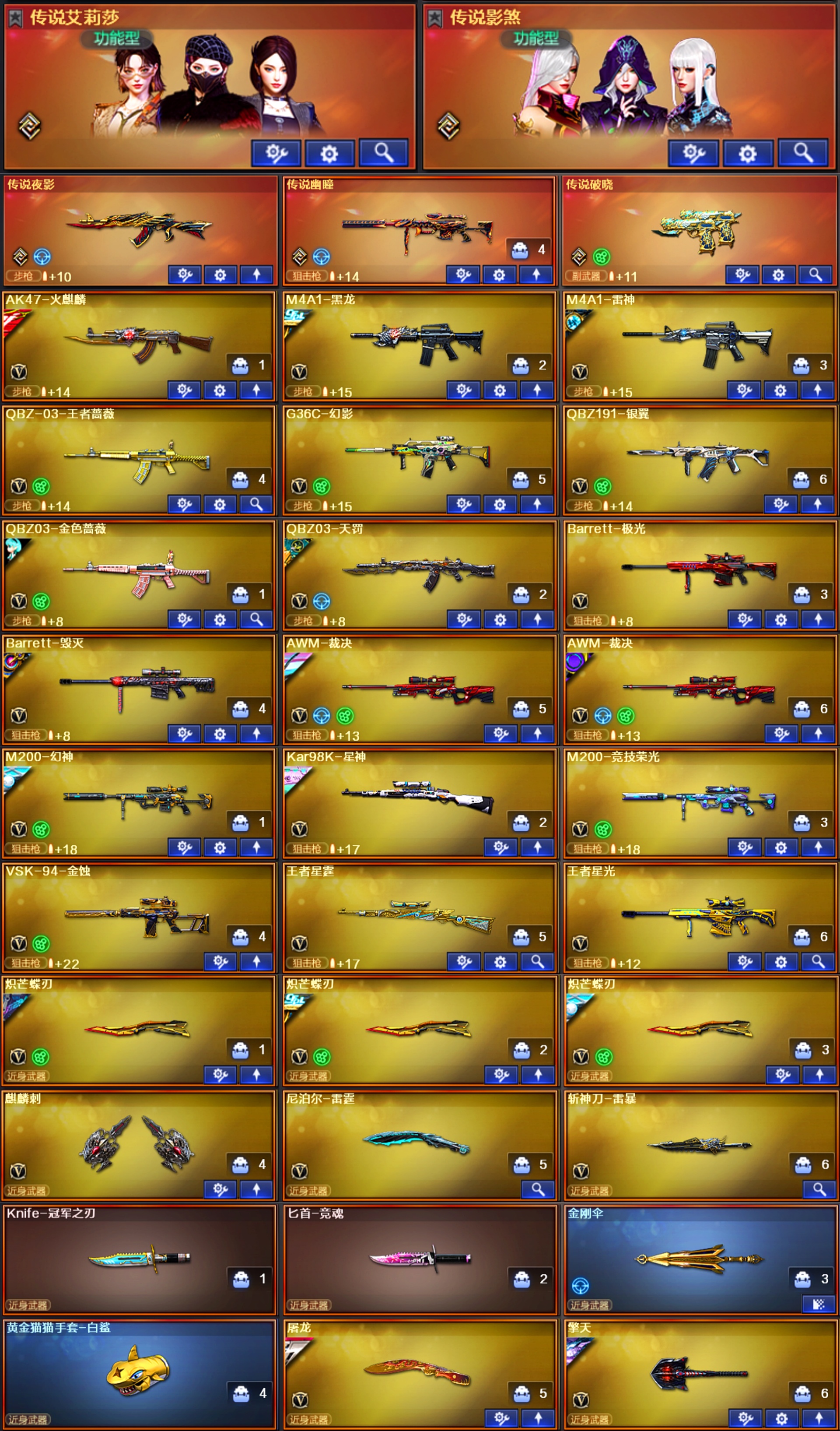 艾莉莎幽瞳幻影银翼雷神臻藏♥幻神音效卡16皮粉狮子白鲨欧欧星火♥裁决音效卡QBZ九皮♥3冠特3无冕