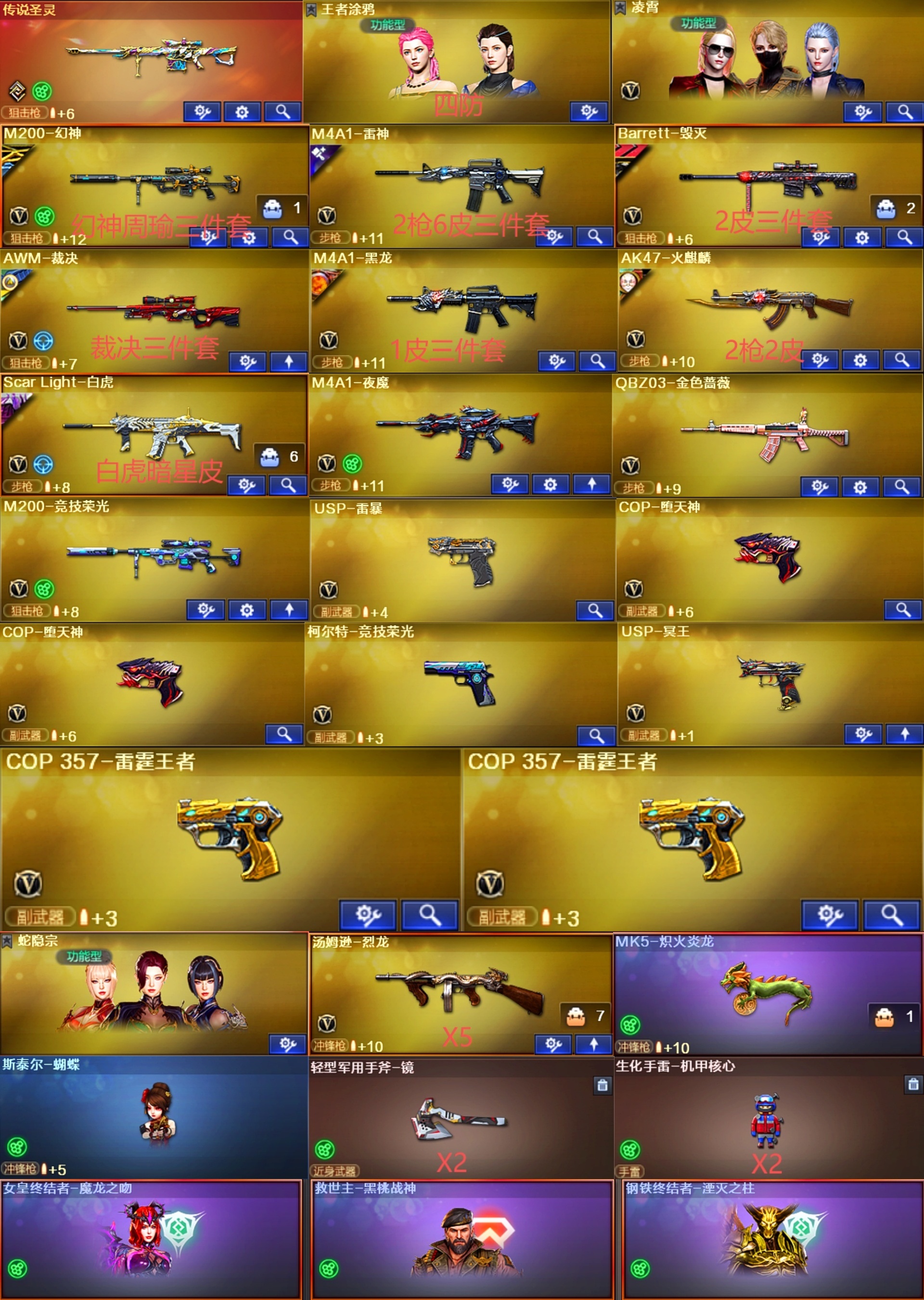账号开挂追责 后台看的一清二楚!!!! 不要有侥幸心理 开挂是犯罪行为!!!!;USP-雷暴,QBZ03-金色蔷薇,M200-幻神,Scar Light-白虎,