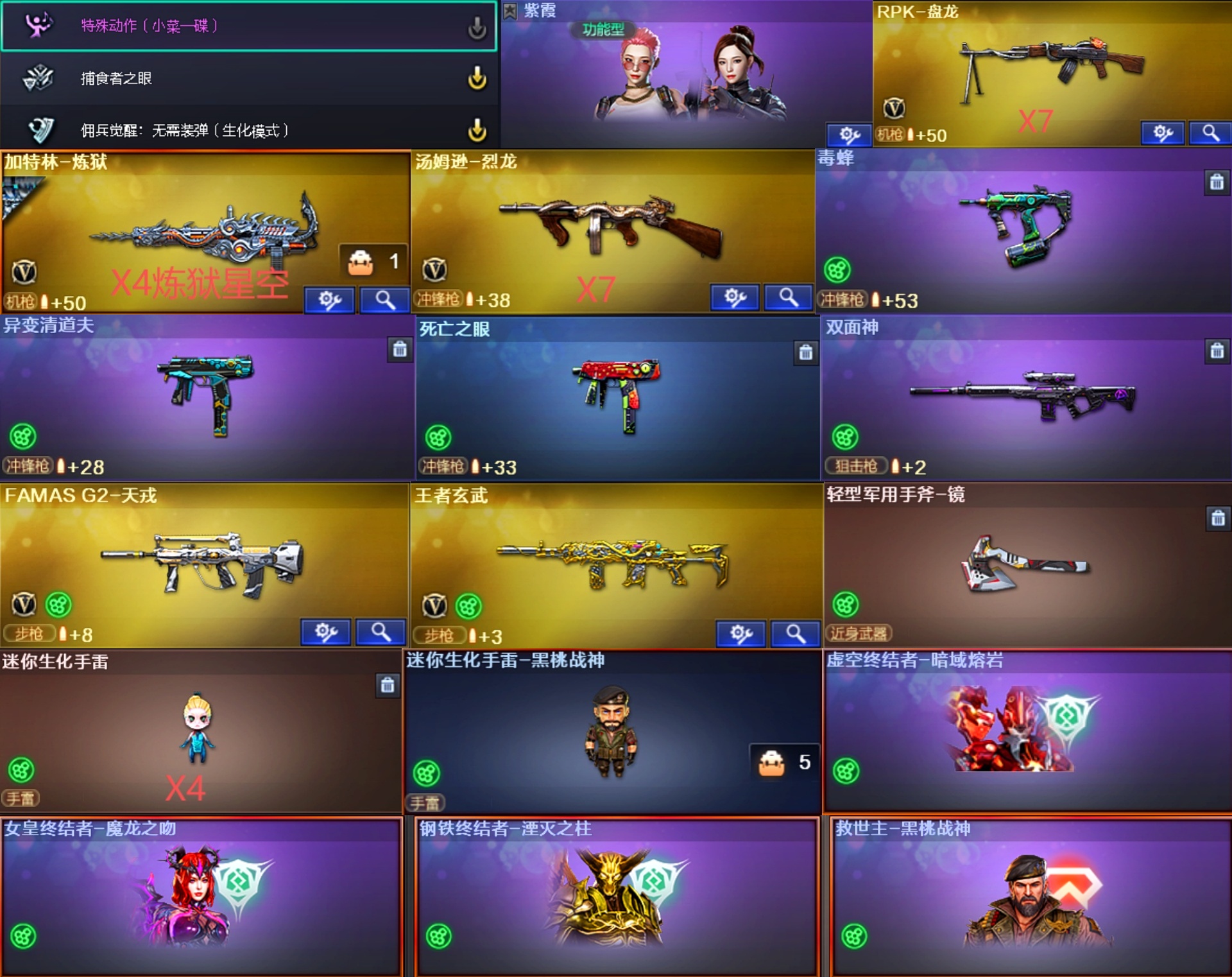 200v 幻兽 13把高质量副武器 幻神3皮三件套裁决音效卡 天戎 白虎 蔷薇6盘6烈可爆破生化