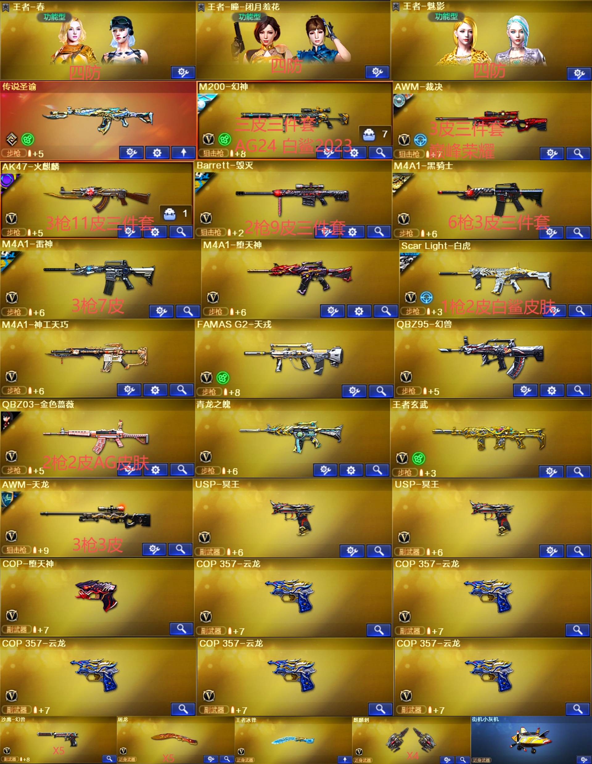 账号开挂追责 后台看的一清二楚!!!! 不要有侥幸心理 开挂是犯罪行为!!!!;RPK-盘龙,QBZ03-金色蔷薇,M200-幻神,Scar Light-白虎,传说圣谕,