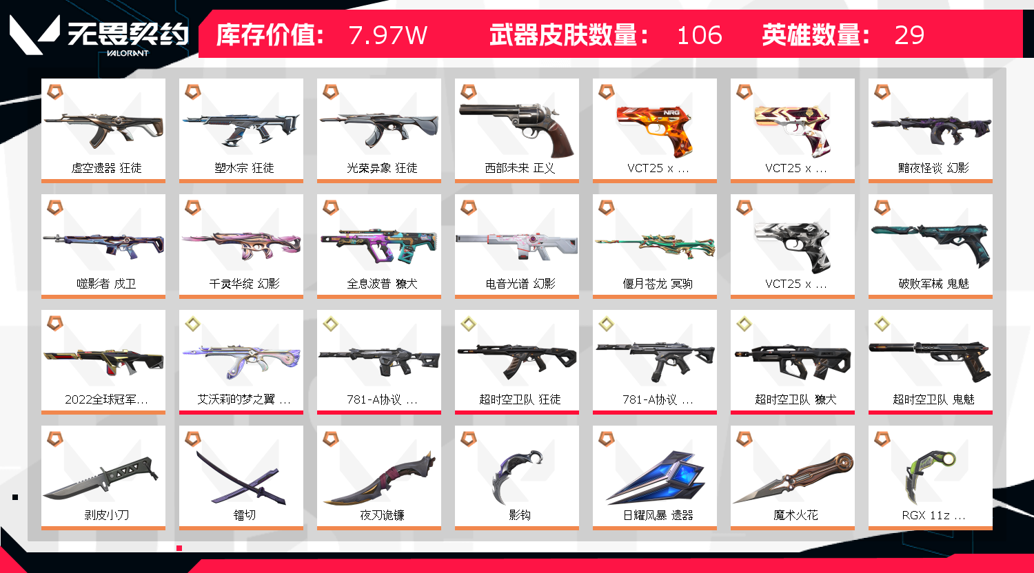 • 武器皮肤数量: 106