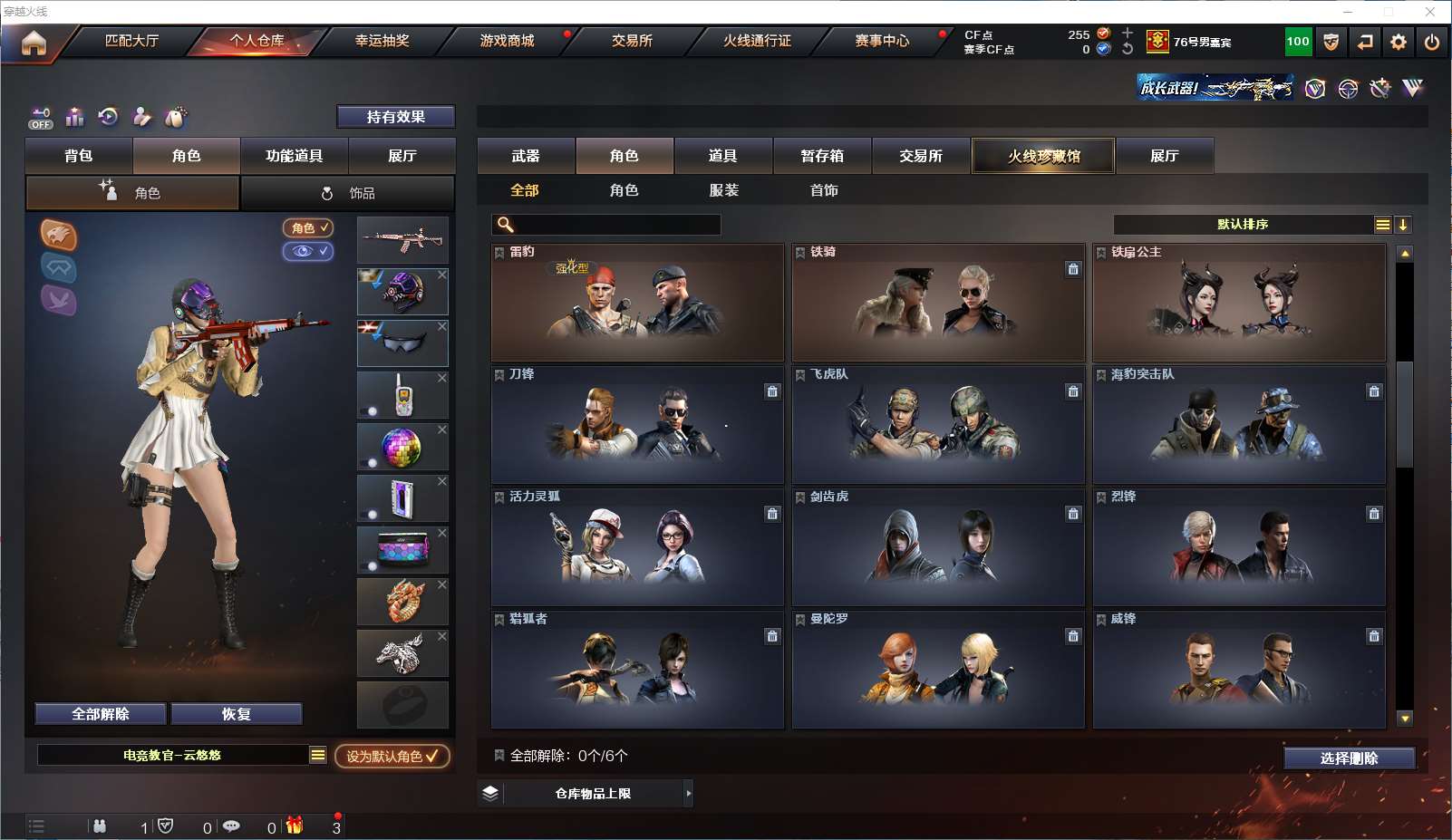 【白虎3件套!!!】【金色蔷薇3件套!!!】【 m200幻神+冠军之幻皮肤+纸灯笼皮肤+usp雷暴】【m200竞技荣光套装+电竞教官云悠悠】【传说圣灵 传说暗裔】【白虎+白虎音效卡+ag冠军皮肤】【qbz03金色蔷薇+金色蔷薇音效卡+ag冠军皮肤+纸灯笼皮肤+qbz03王者蔷薇】【hk417朱雀+玄武】【hk417朱雀+朱雀音效卡】【雷神+雷神音效卡+荣耀之魄皮肤】【毀灭+毀灭音效卡+荣耀之怒皮肤】【火麒麟+火麒麟音效卡】【黑骑士+黑骑士音效卡+冠军之势皮肤】【黑龙+黑龙音效卡】【极光+极光音效卡】【王者火魄 王者冰魄 王者之心 王者之影王者之势 王者之武 王者之决】【千变 黑武士 天启 龙血 超新星 武圣 黑武士锦绣游龙 玫瑰精灵 黑骑士海王 身先士卒 常胜将军 天龙 芭蕾特朱雀 暗月传说 盘龙 炼狱 烈龙 】——【热门武器/小人呛】【火麒麟绝迹 雷神小红 cop白鲨 芭蕾特零水下丽影 金刚伞 】——【usp雷暴 cop幻灵 柯尔特竞技荣光 修罗 天神 天神动感闪耀】——【屠龙 龙啸 擎天 麒麟刺 斩神刀雷暴 麒麟剌堕天神 龙啸堕天神 幻灵之锋 擎天竞技荣光 唐刀神工天巧】——【雷暴投掷武器套装+堕天神投掷武器套装*2+幻灵投掷武器套装*5+竞技荣光投掷武器套装*3+雷霆王者投掷武器套装】——【角色】【4防(王者葵貂蝉 王者魅影 王者零华冠丽服 王者潘多拉 灵狐者职业经理)】【电竞教官云悠悠 影豹 瞳】【老海豹突击队】;USP-雷暴,电竞教官-云悠悠,RPK-盘龙,QBZ03-金色蔷薇,M200-幻神,Scar Light-白虎,传说暗裔,