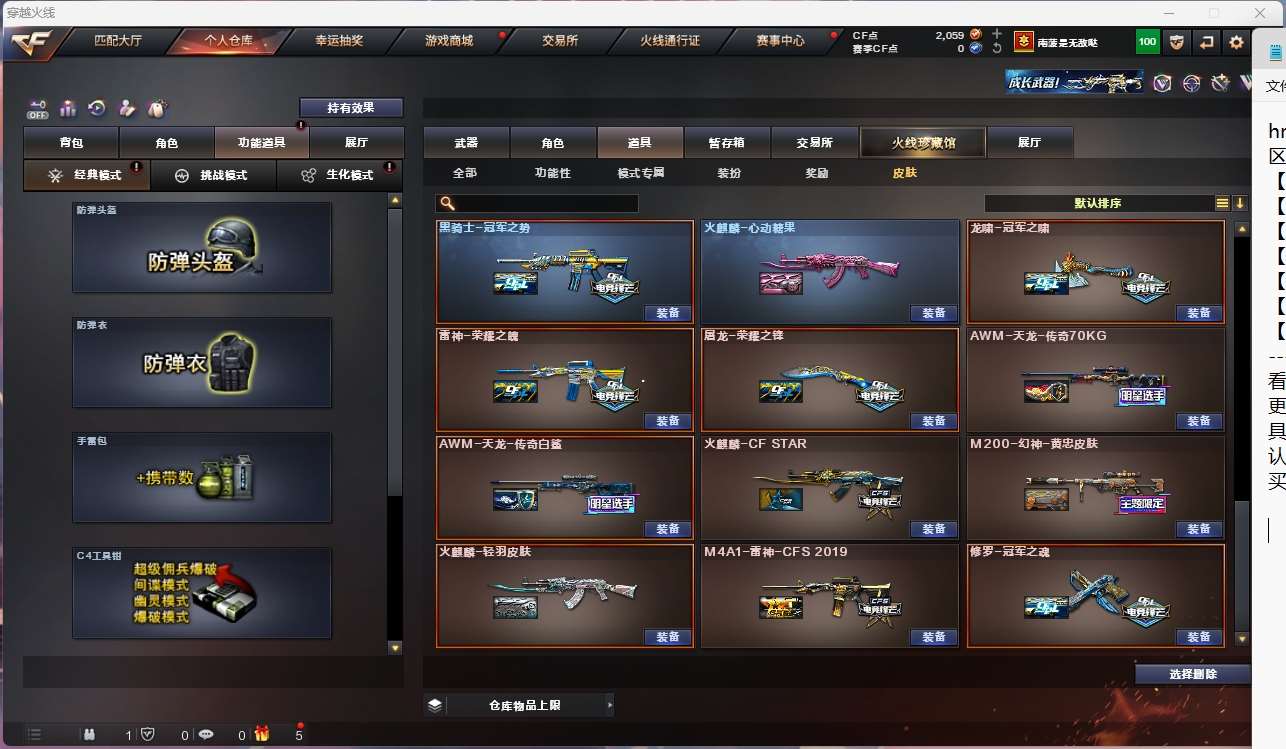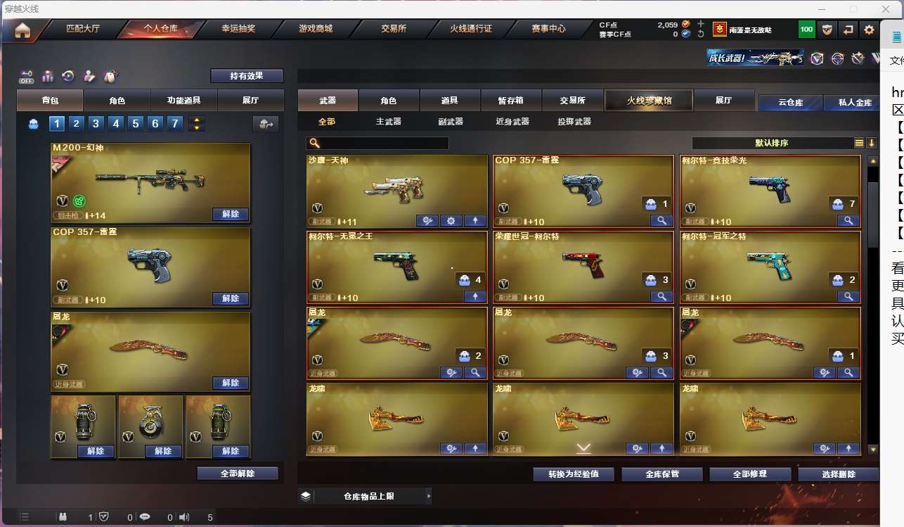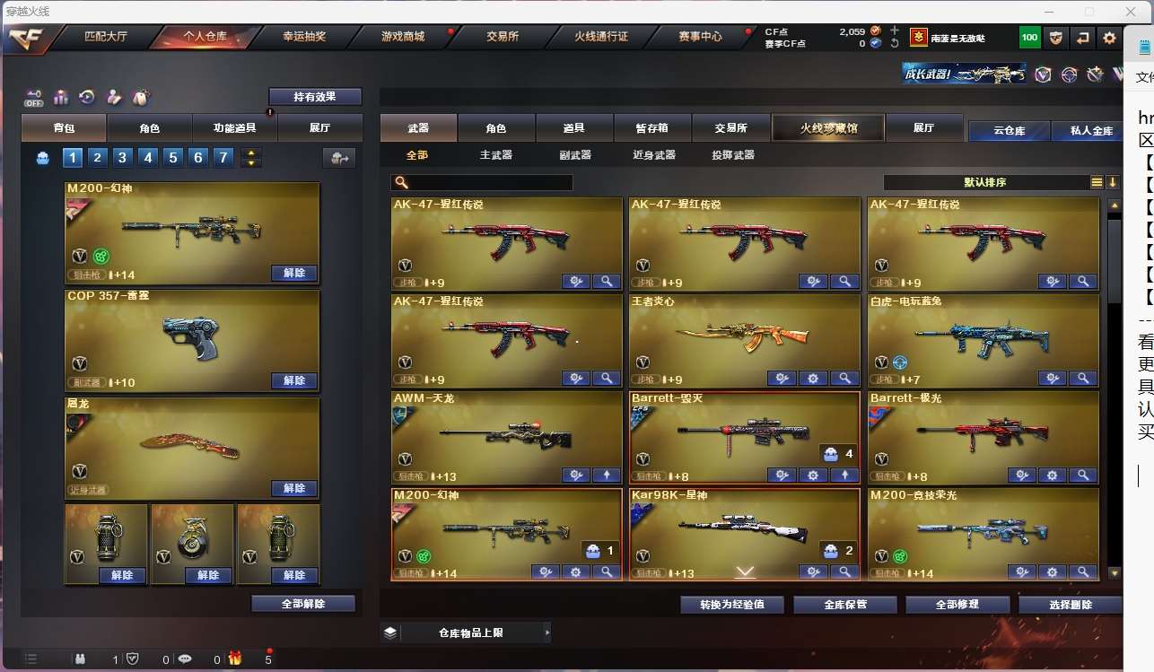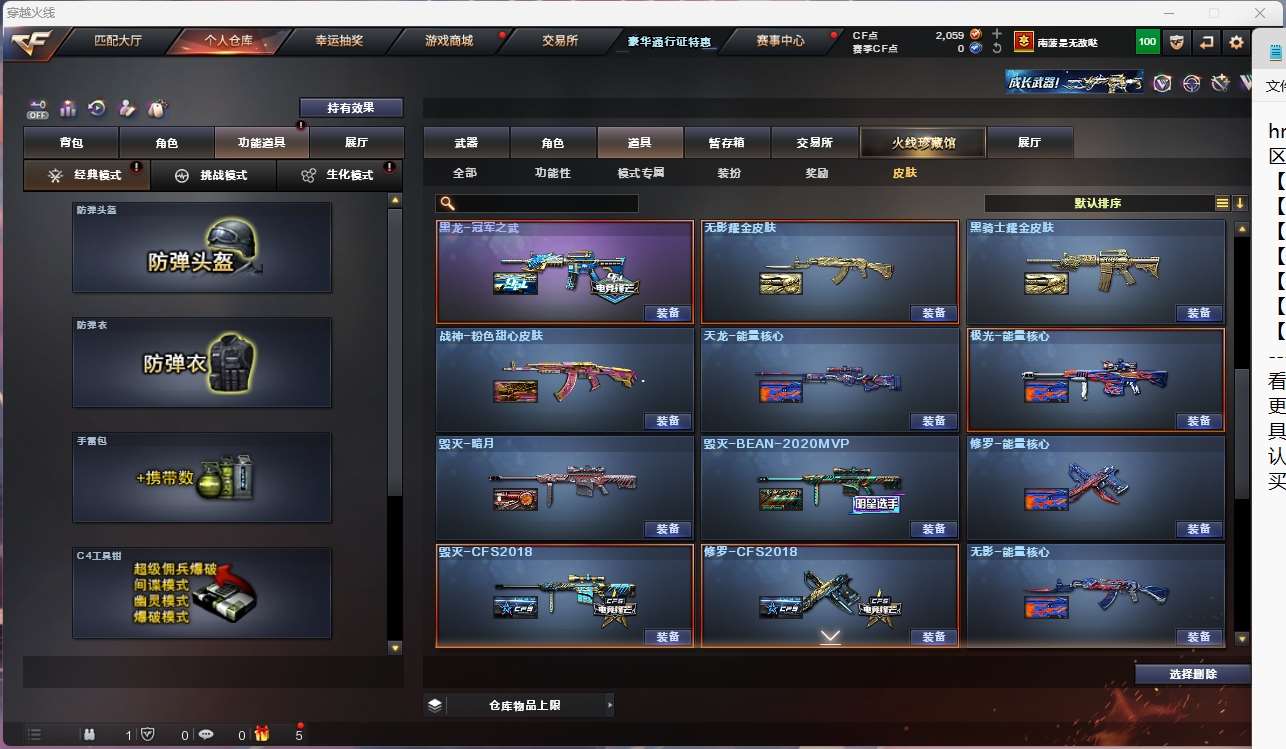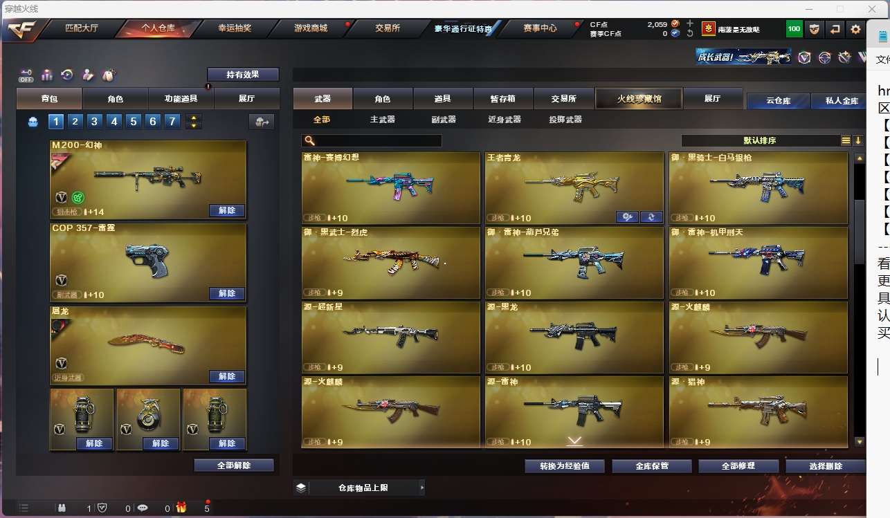 【亮点解析 幻神三件套 星神带皮 白虎带皮】【m200幻神+音效卡+黄忠+cfs2022+冠军之特】【98k星神+璀璨】【m200竞技荣光套+四防云悠悠】【传说圣灵】【scar白虎+巅峰荣耀+ag20冠军】【qbz金色蔷薇+卡】【hk417朱雀】【qbz天罚 】【火麒麟】【黑龙+冠军之武】【雷神+荣耀之魄+荣耀世冠】【黑骑士+卡+冠军之势】【毁灭+卡+呛娘+cfs2018】【极光+卡 】【炽芒蝶刃】 【武器:qbz云龙 王者炎心 白虎电玩蓝兔 盘龙 炼狱*4 】 【9手呛:修罗*3 天神 雷霆 竞技荣光 柯尔特无冕之王 荣耀世冠柯尔特 】 【12刀具:屠龙*3 龙啸*5 擎天 麒麟刺*2 夜魔 】 【4雷套:雷暴雷 夜魔雷 幻灵雷 竞技荣光雷 】 【音效卡:极光音效卡 金色蔷薇音效卡 幻神音效卡 毁灭音效卡 黑骑士音效卡 】 【四防角色:云悠悠 】;柯尔特-无冕之王,荣耀世冠-柯尔特,柯尔特-冠军之特,炽芒蝶刃,电竞教官-云悠悠,RPK-盘龙,QBZ03-金色蔷薇,