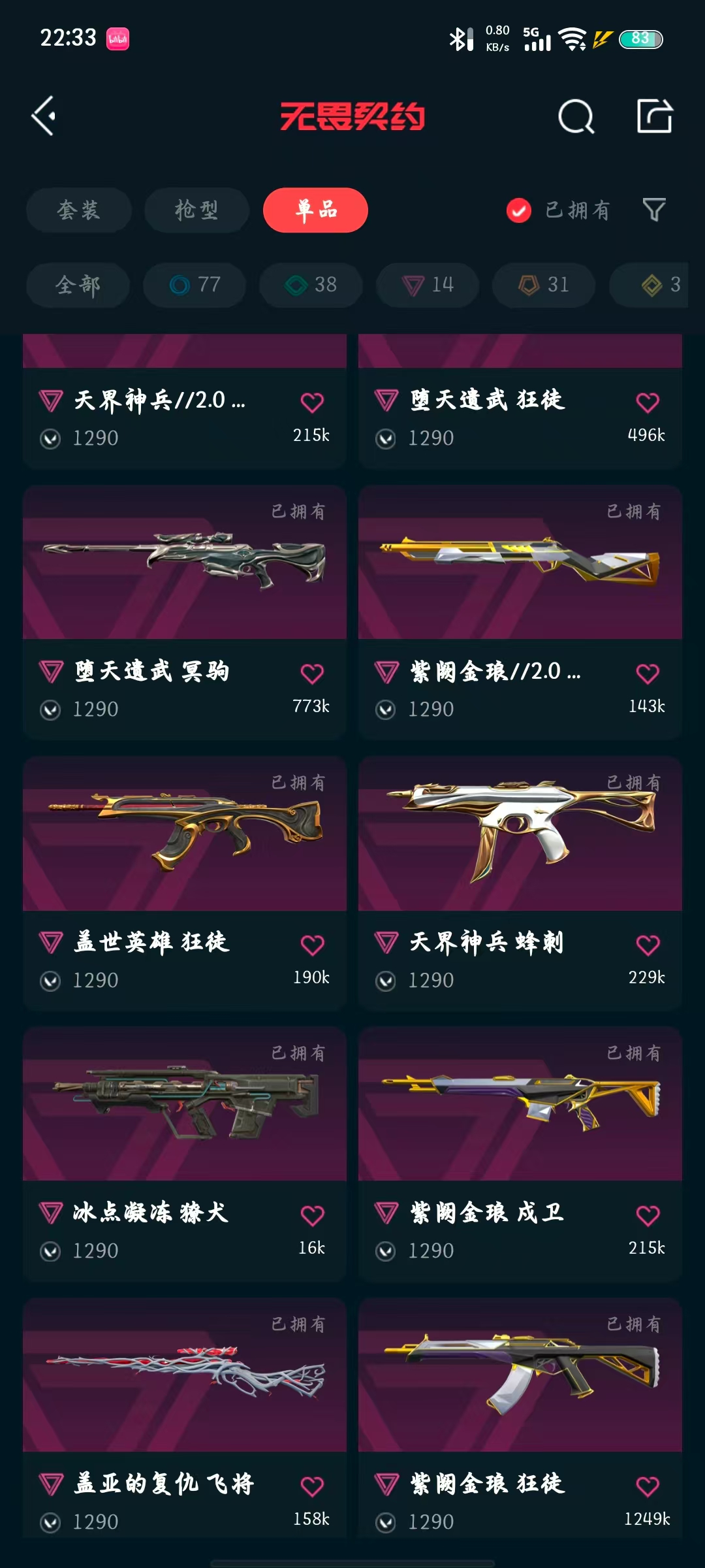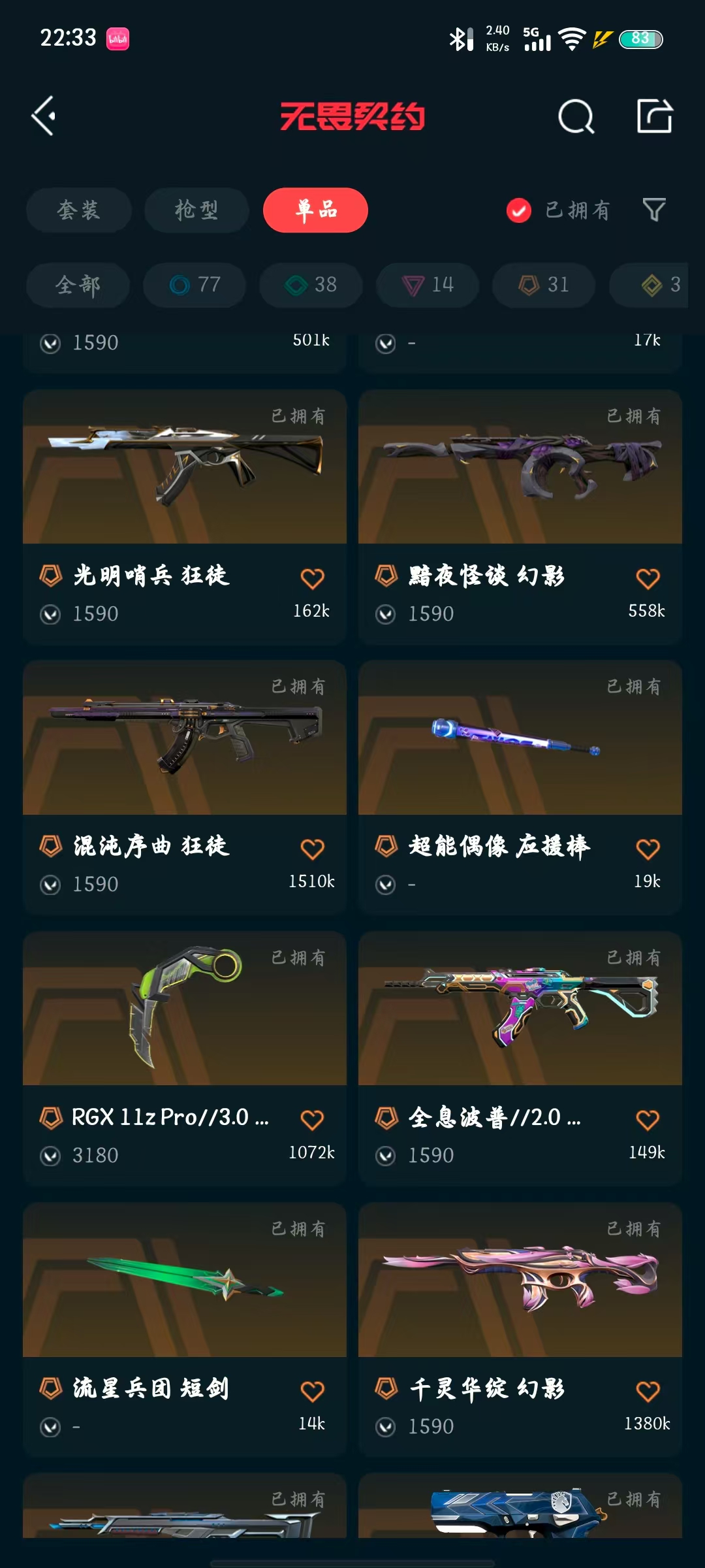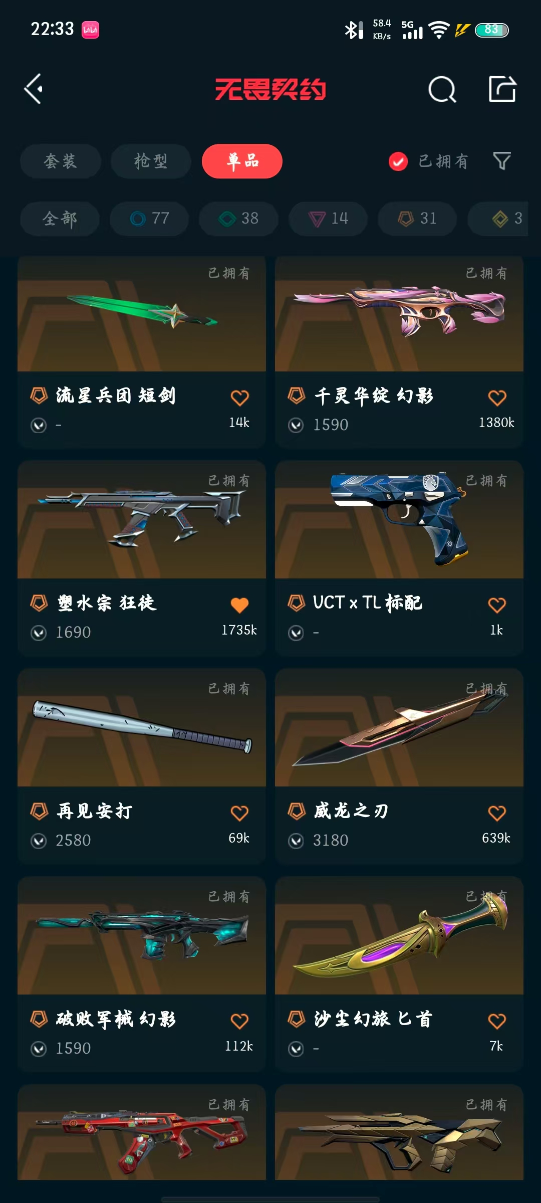首页 > 租号大厅 > 无畏契约-wegame > wegame/wegame > 冻结秒解✨可排✨7.2w价值✨奇点全套✨离火刃✨显卡爪刀✨塑水宗狂徒✨威龙之刃✨侦察蝴蝶✨