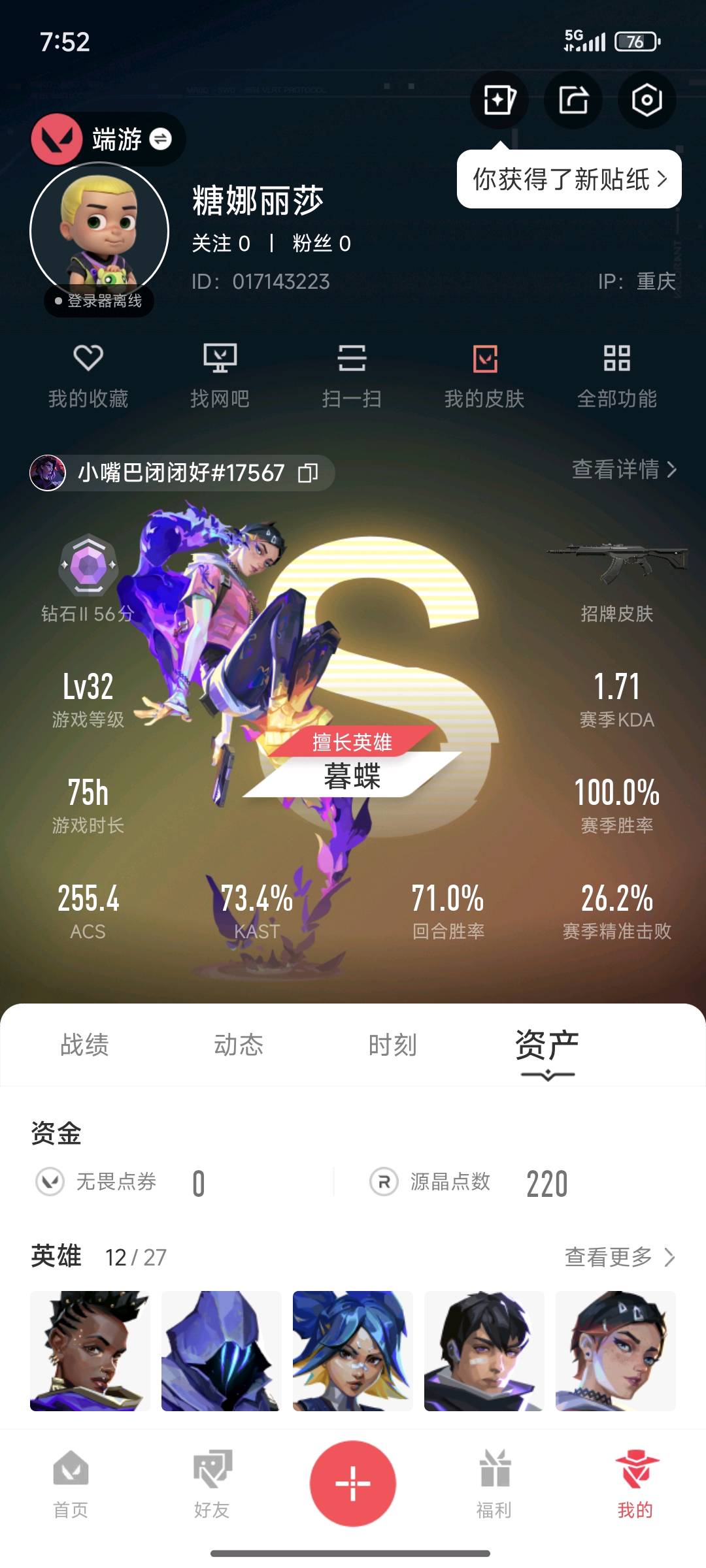• 游戏区服:无畏契约-wegame / wegame / wegame