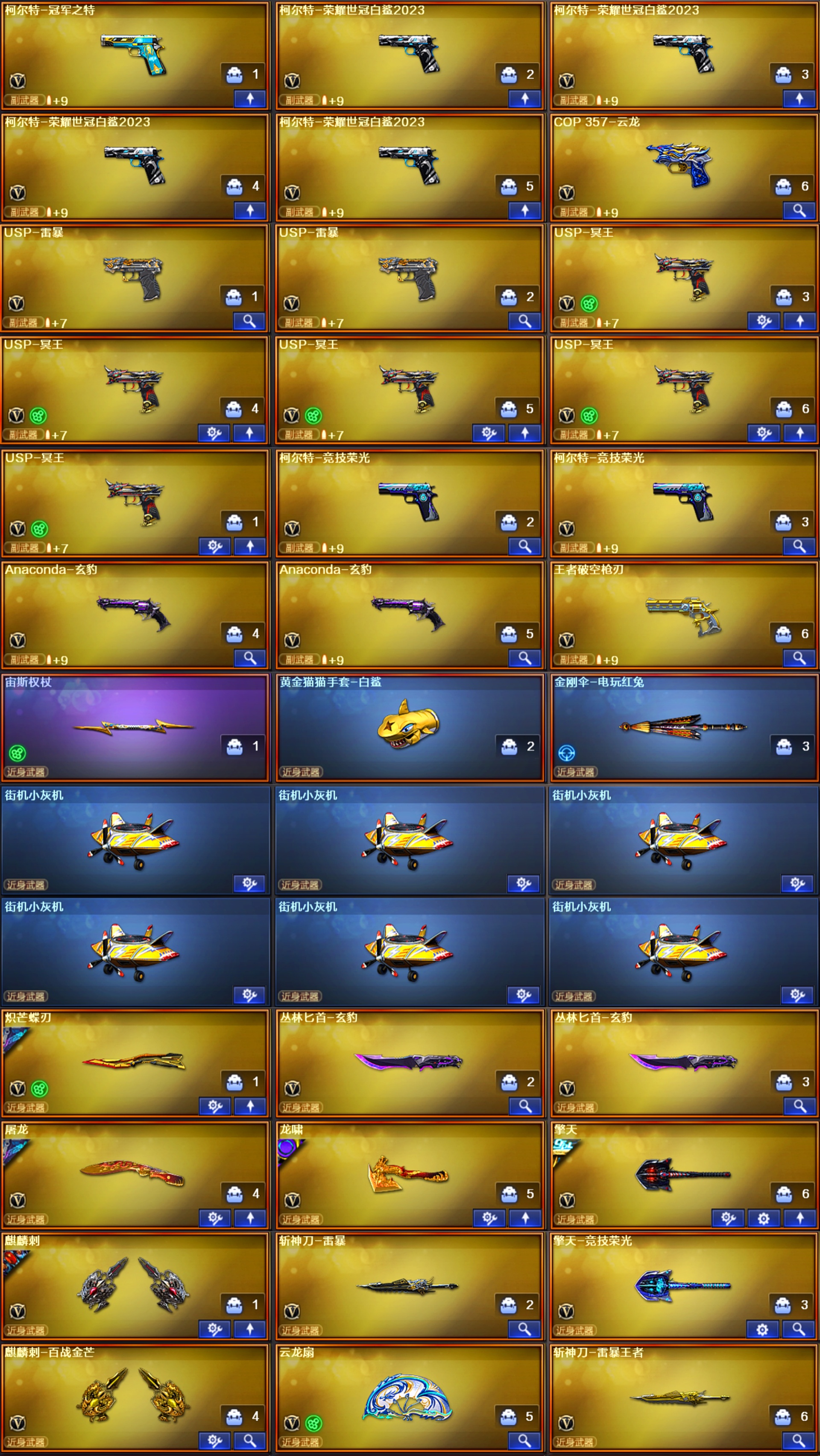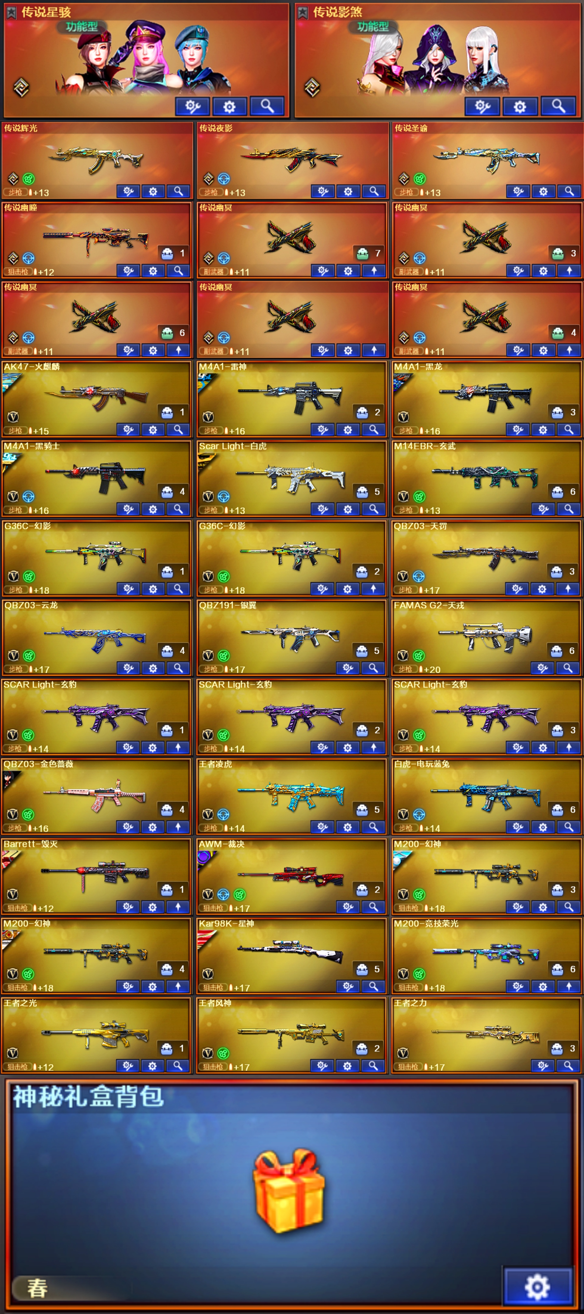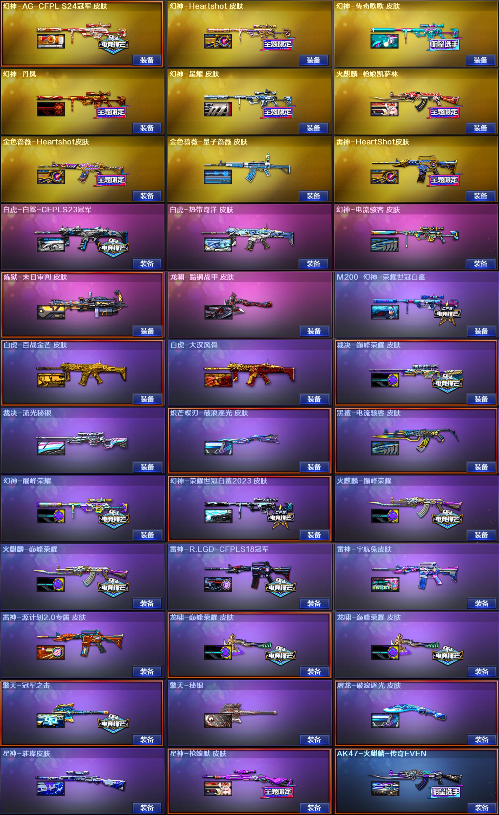 星骇圣谕幽瞳幻影天戎银翼玄豹♥幻神音效卡9皮白鲨欧欧♥裁决音效卡2皮巅峰♥白虎5皮♥5柯尔特7USP