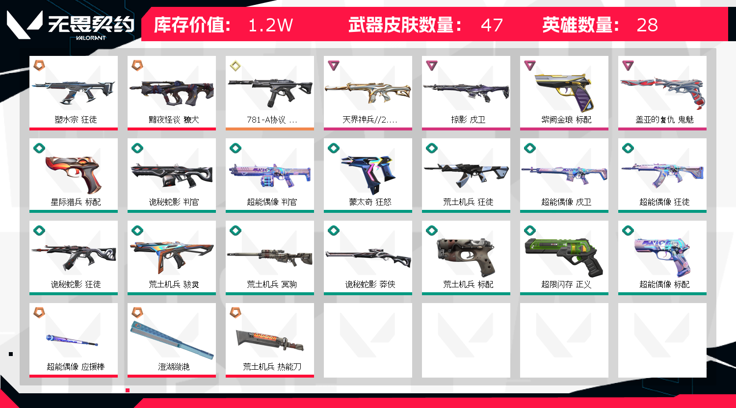 • 皮肤资产价值: 12010