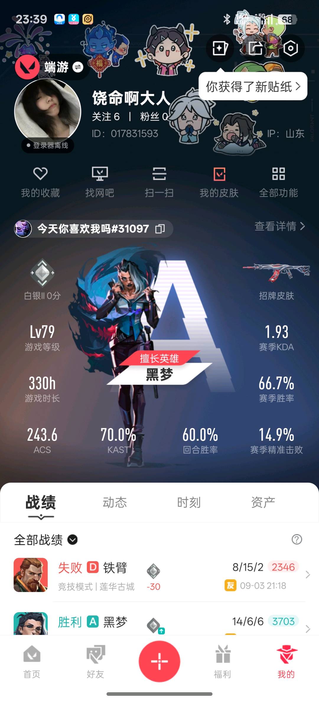 • 游戏区服:无畏契约-wegame / wegame / wegame