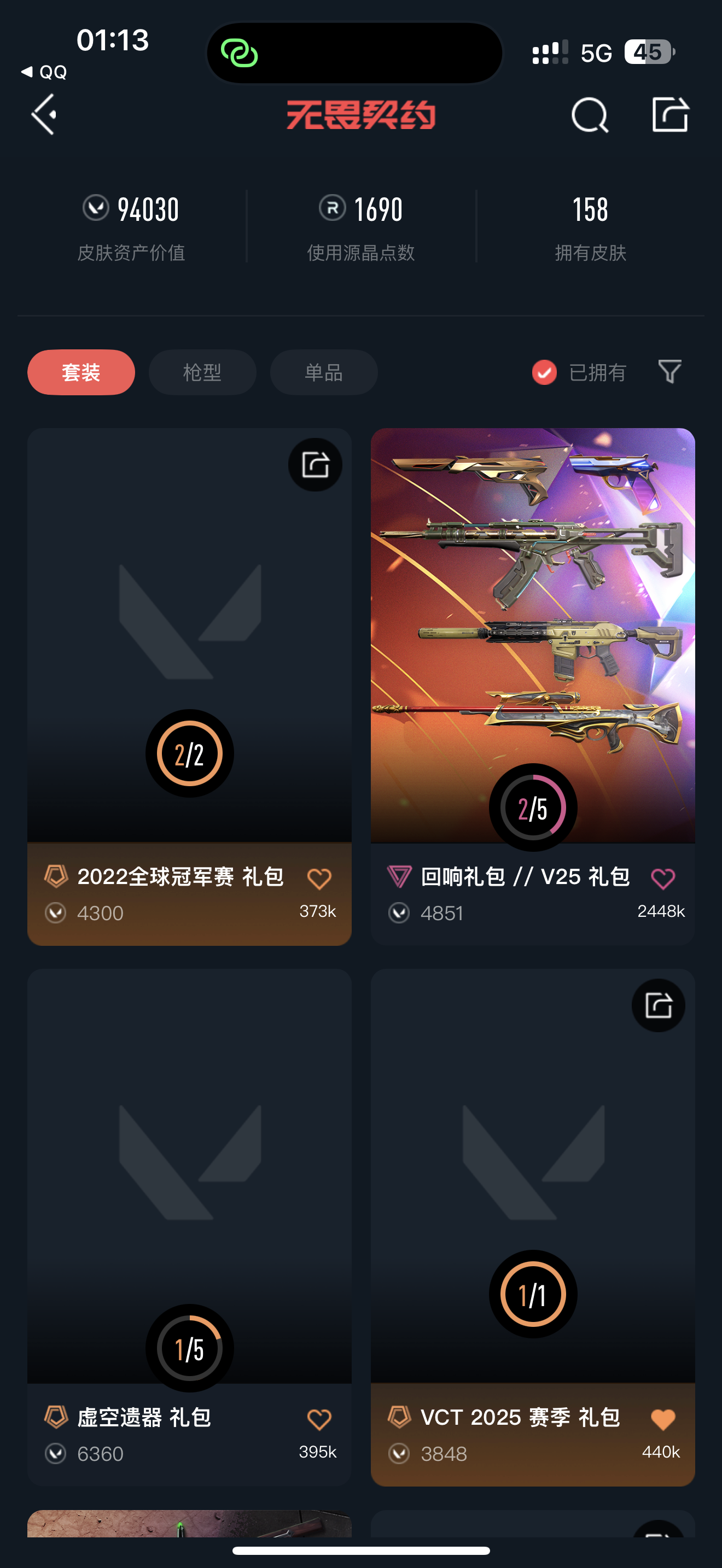 9.4万库存♥塑水宗套♥威龙之刃♥22冠军套♥vct爪刀♥创纪元套♥星守奥丁♥天界鬼魅♥混沌序曲套