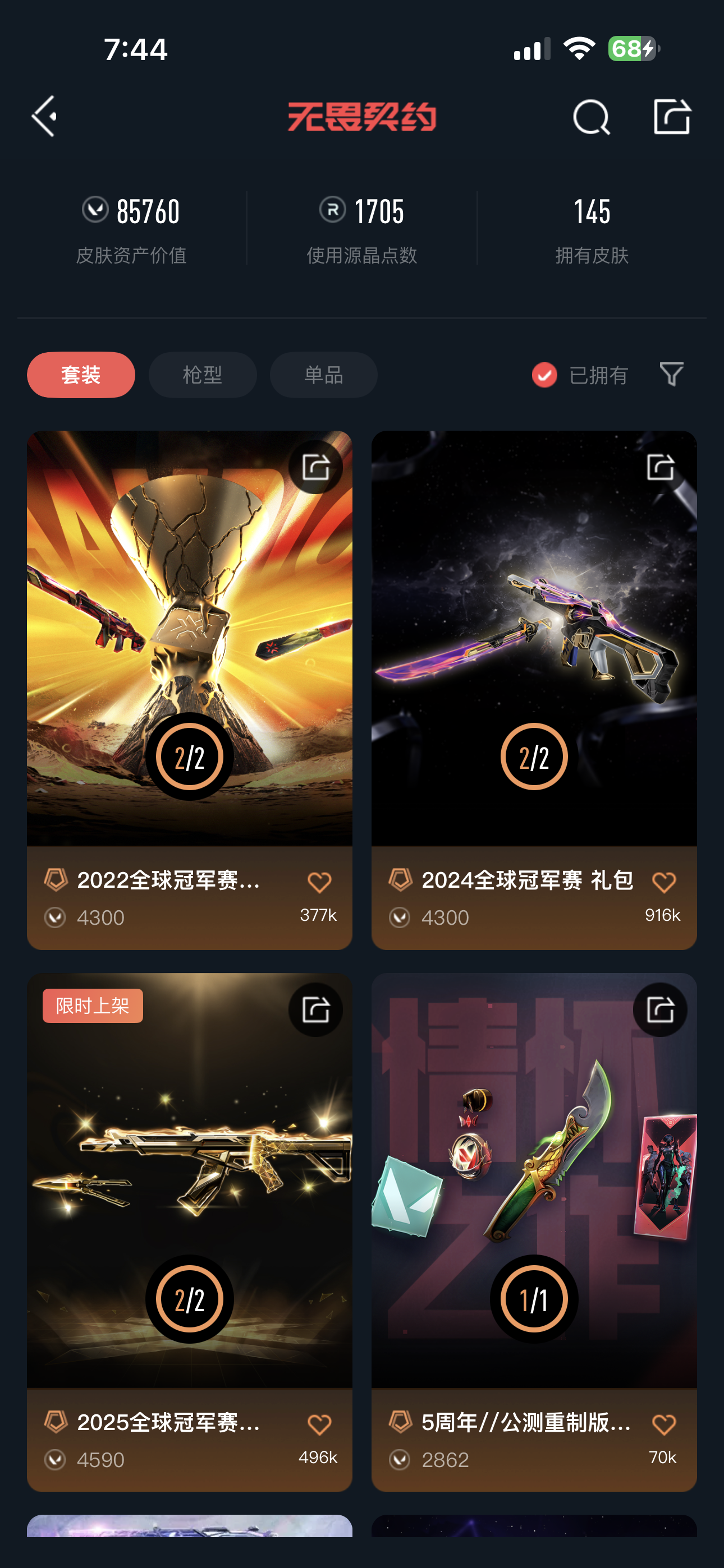 首页 > 租号大厅 > 无畏契约-wegame > wegame/wegame > 可排位❤ 禁🈲炸鱼!!❤25冠军套 8.5W资产❤️满英雄❤武器皮肤数量135各种冠军枪和冠军刀