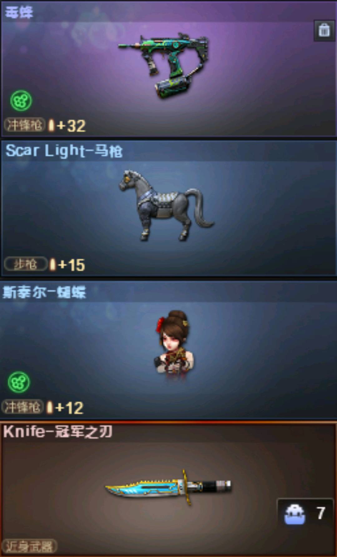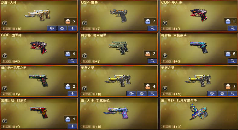 111111;USP-雷暴,柯尔特-无冕之王,荣耀世冠-柯尔特,炽芒蝶刃,Knife-冠军之刃,隼,晴雅,