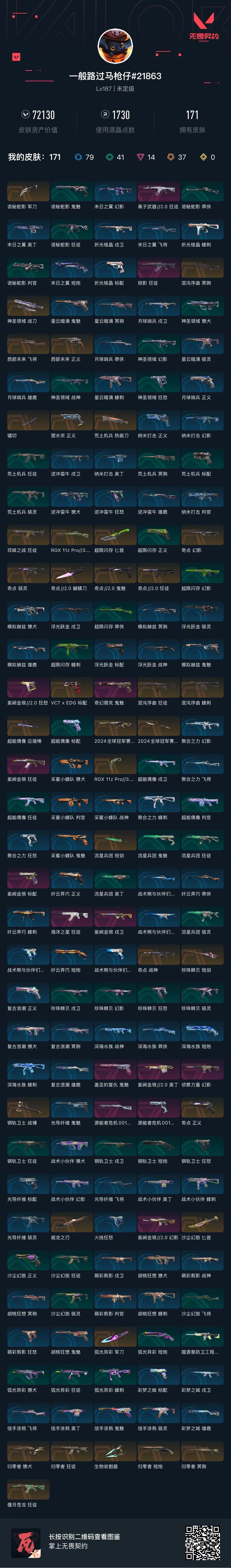 • 皮肤资产价值: 72130