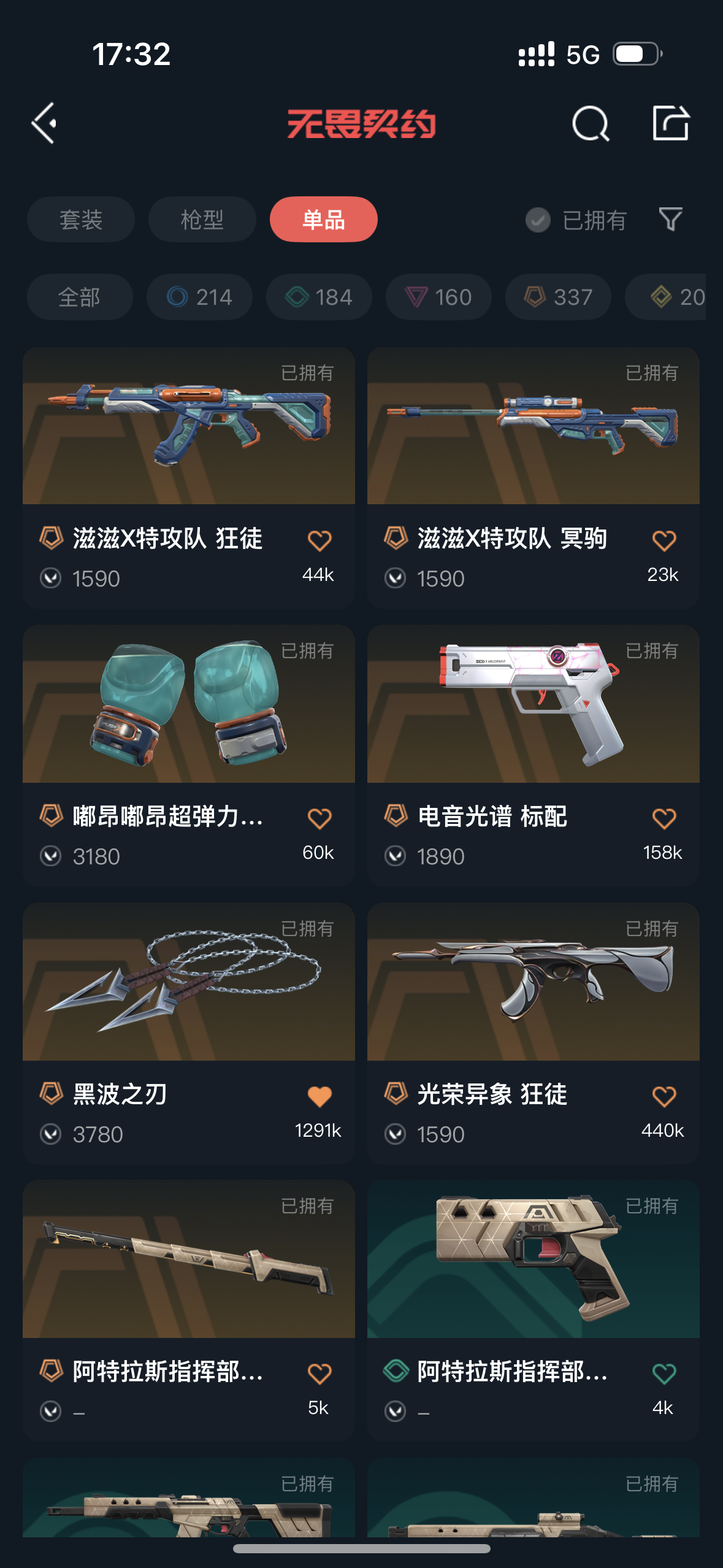 允许 英雄15 武器皮肤数量62;黑波之刃,侦察力量 幻影,RGX 11z Pro 狂徒,混沌序曲 狂徒,光荣异象 狂徒,奇点 正义,