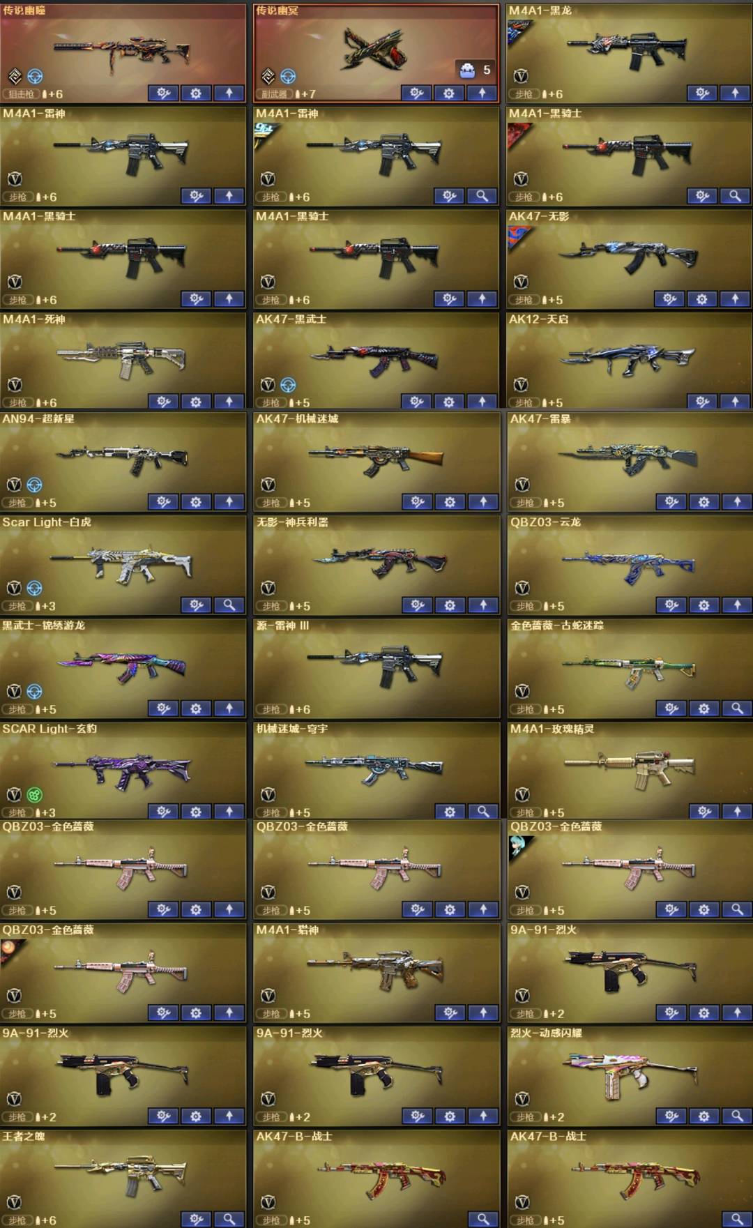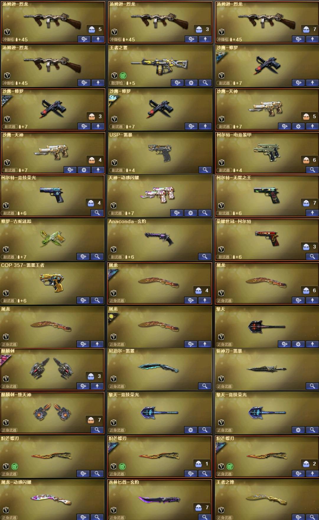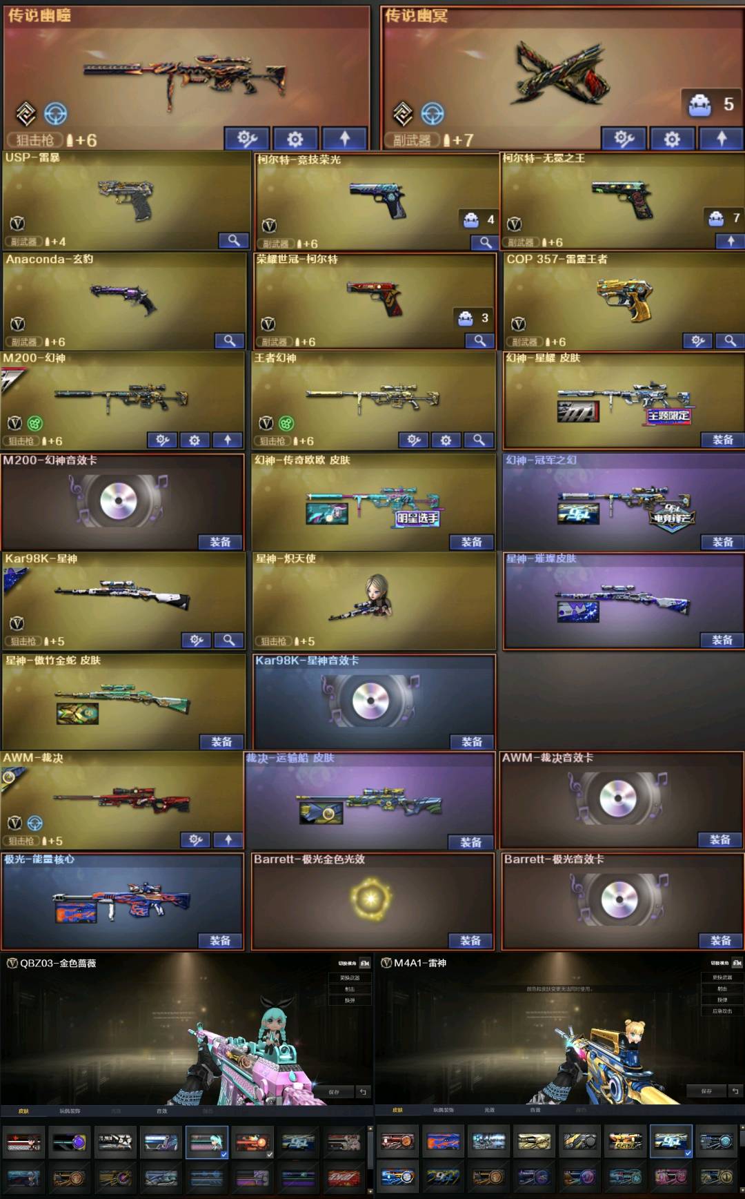 。。。。;USP-雷暴,柯尔特-无冕之王,荣耀世冠-柯尔特,传说幽冥,炽芒蝶刃,Knife-冠军之刃,传说影煞,