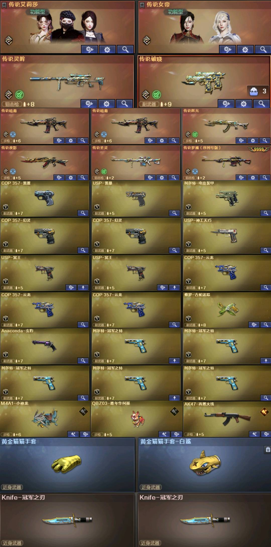。。。。。;USP-雷暴,柯尔特-冠军之特,炽芒蝶刃,Knife-冠军之刃,沙漠玫瑰,传说影煞,传说女帝,
