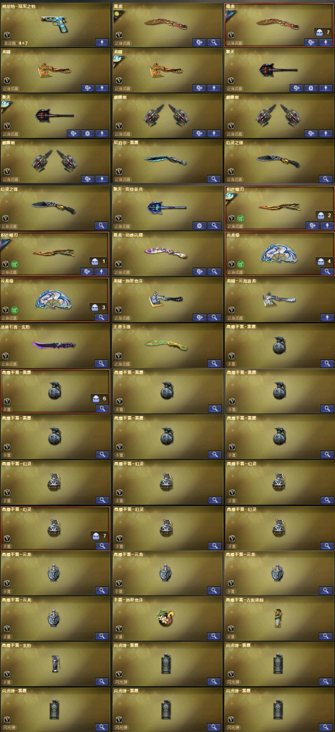 。。。。。;USP-雷暴,柯尔特-冠军之特,炽芒蝶刃,Knife-冠军之刃,传说影煞,隼,传说艾莉莎,