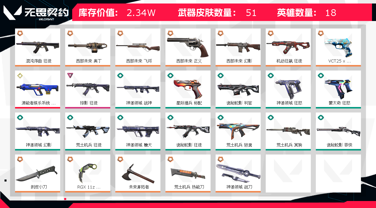 • 皮肤资产价值: 23450