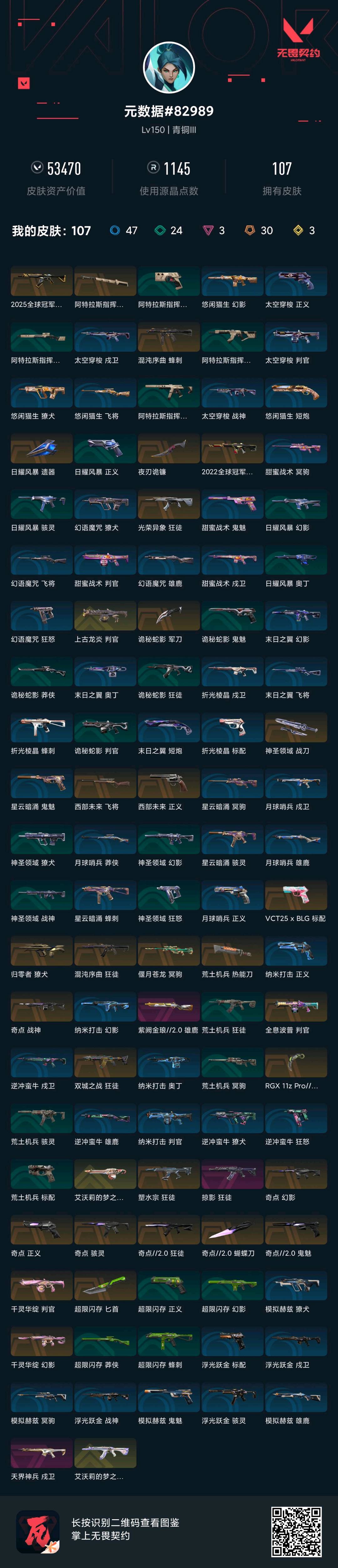 首页 > 租号大厅 > 无畏契约-wegame > wegame/wegame > 107皮全英雄无畏契约瓦罗兰特25冠军22冠军