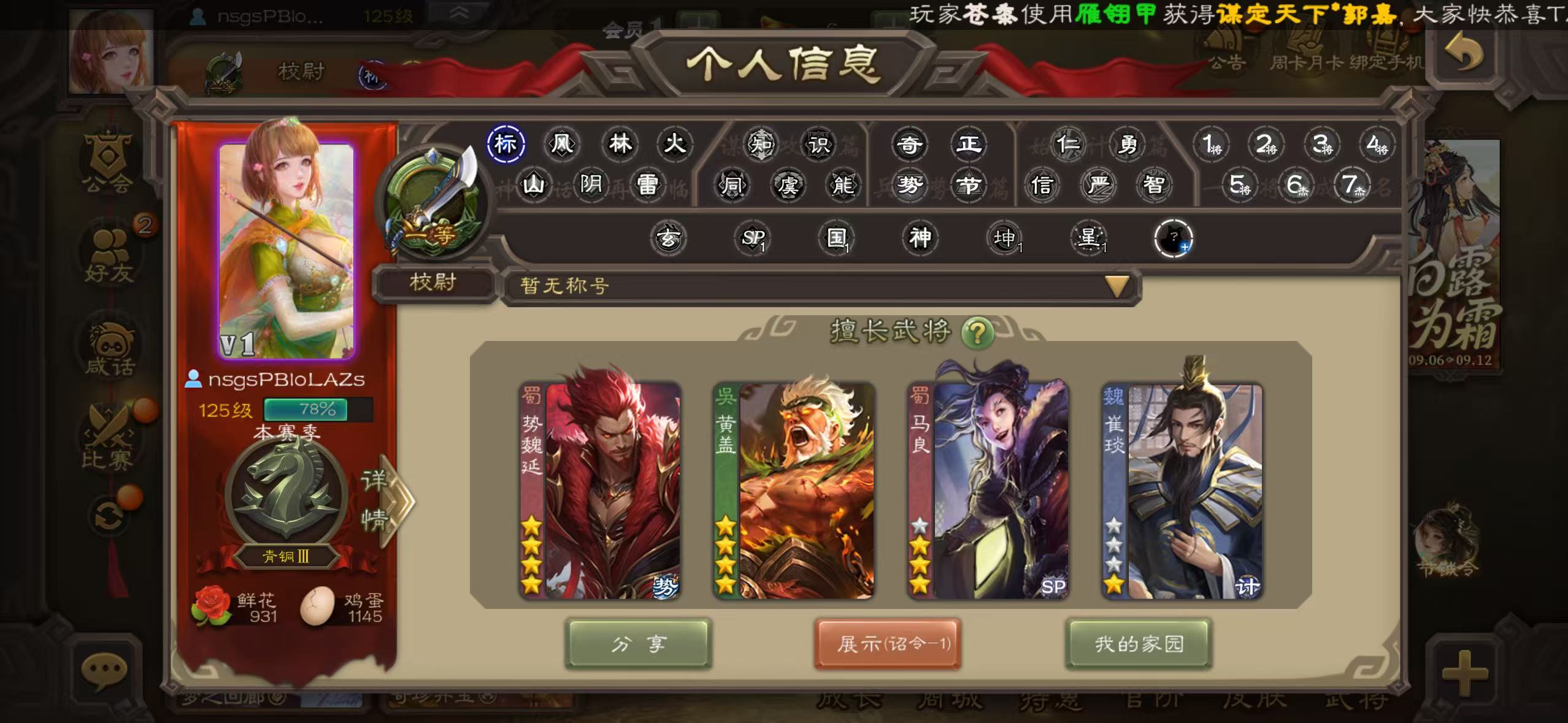 首页 > 租号大厅 > 三国杀手游 > 全区全服/全区全服 > 势魏延 Y1💛 手气卡充足 重金新氪: 三形态觉醒特效 无限距离 强中 强力吸血鬼