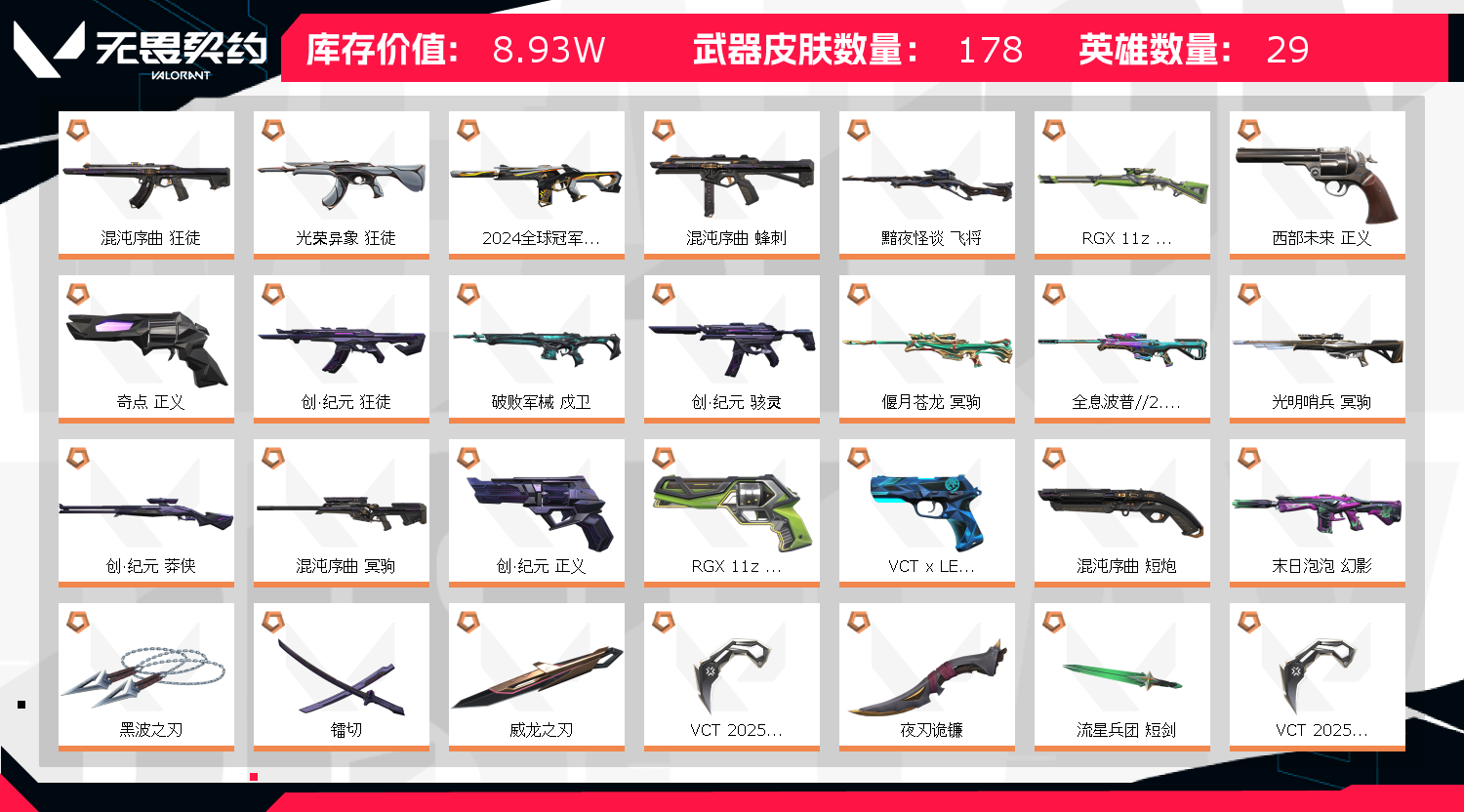 首页 > 租号大厅 > 无畏契约-wegame > wegame/wegame > 9W库存24冠军套✅特效拉满✅黑波之刃镭切RGX爪刀VCT战刀✅盖亚混沌光荣异象侦查末日泡泡奇点正义