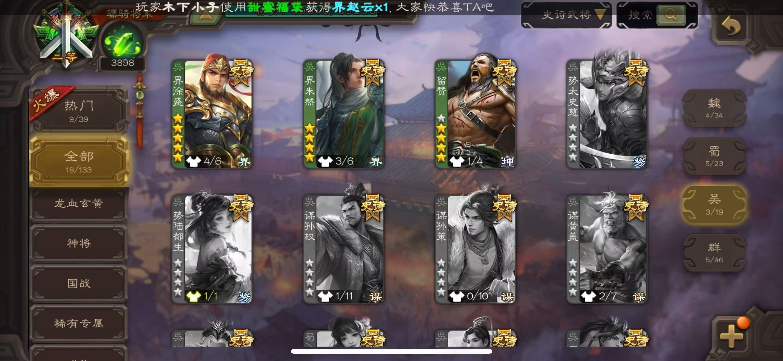逃跑拉黑 四星玉龙 无限点将 20次上限之后去【自由场,排位】无限点玩!嗷嗷爽!校尉低官阶,炸鱼无敌号! 🌈租号请阅: 💜非账号问题(密码错)【任何退单行为】直接拉黑!(享受不到我上的新品号,我店上新将最快) ❤️直接下单就行(系统自动发账号密码) 💙点将20次上限时,可进【自由场】军八模式无限次数! 💚版本:三国杀移动版,例如:浏览器百度搜索六个字:三国杀移动版(不要去应用商店,切记)