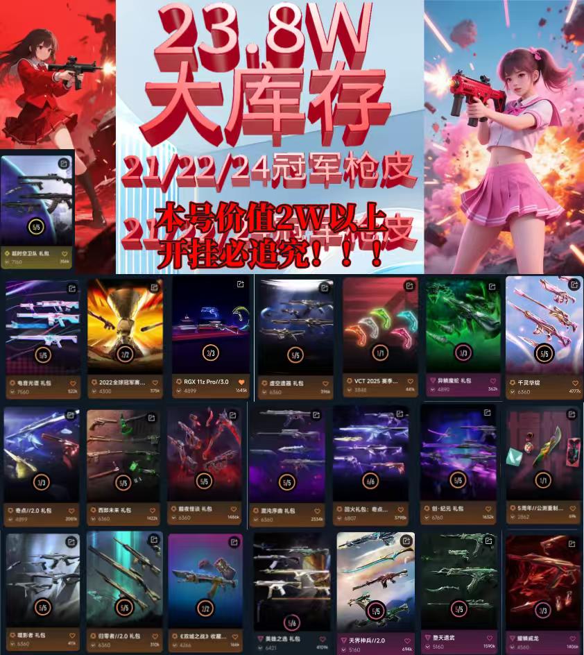 首页 > 租号大厅 > 无畏契约-wegame > wegame/wegame > 禁炸鱼!发现会顶号!!!21/22/24冠军套 22.8W大库存 请勿开挂,封号必走法院起诉