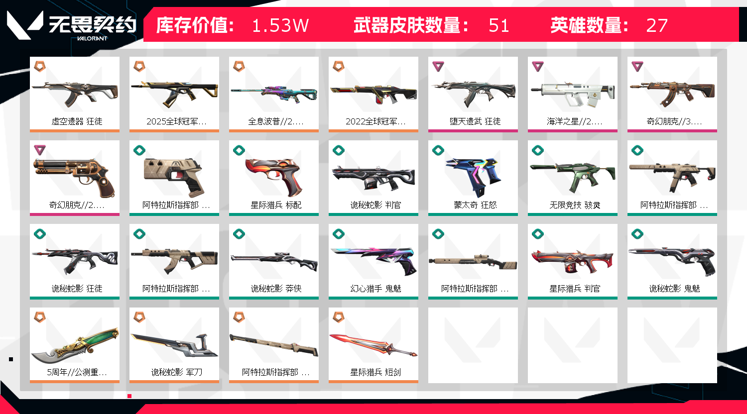 • 皮肤资产价值: 15300