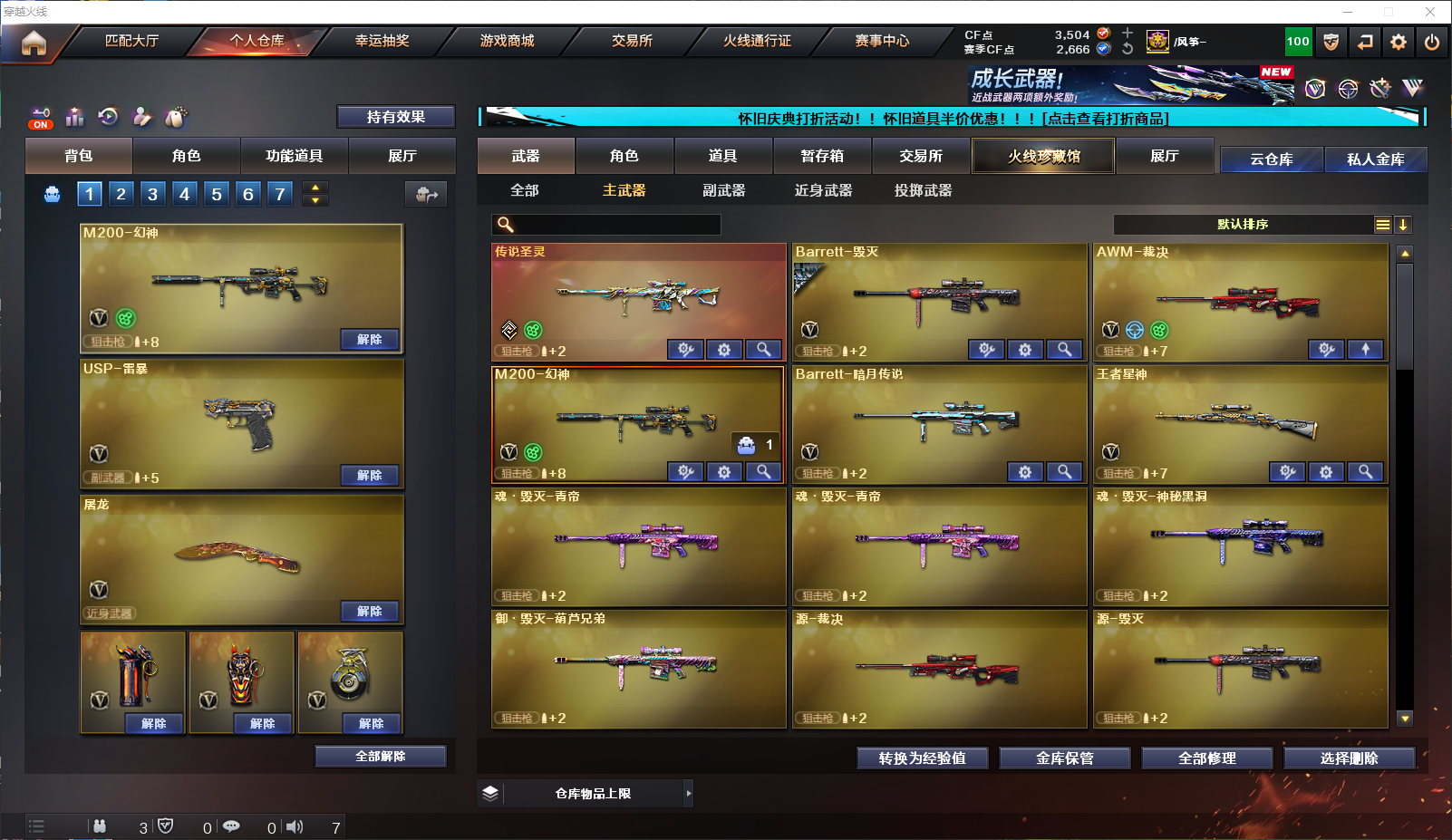 88V幻神王者星神传说光耀传说圣灵白虎6盘6烈死亡之眼usp雷暴八面玲珑满级青龙禁开挂挂机;USP-雷暴,荣耀世冠-柯尔特,RPK-盘龙,QBZ03-金色蔷薇,M200-幻神,Scar Light-白虎,