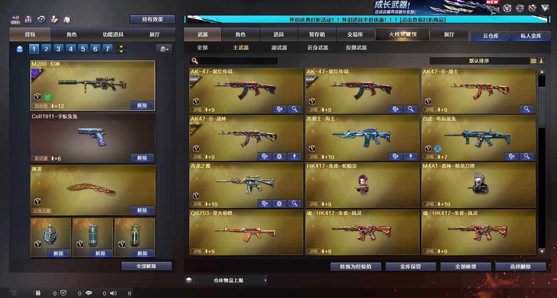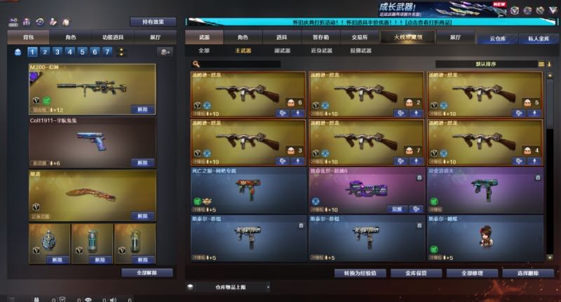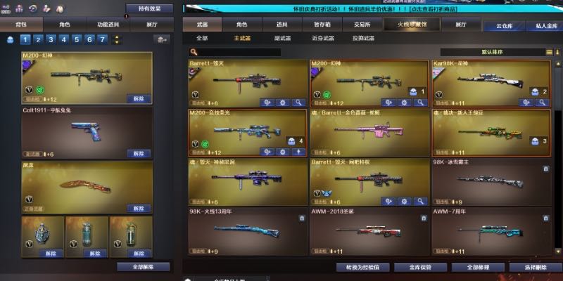 幻神巅峰荣耀皮肤加音效 星神冠军皮肤加音效 ,炽芒蝶刃带皮 六背包英雄雷加六烈龙;USP-雷暴,炽芒蝶刃,王者沙漠玫瑰,QBZ03-金色蔷薇,M200-幻神,Scar Light-白虎,Kar98K-星神,