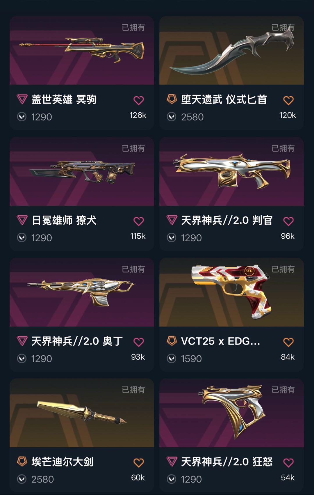 可排位12万库存盖亚塑水21冠军混沌,千灵华绽侦察天界神兵2般若假面781,VCT25爪刀紫金爪刀
