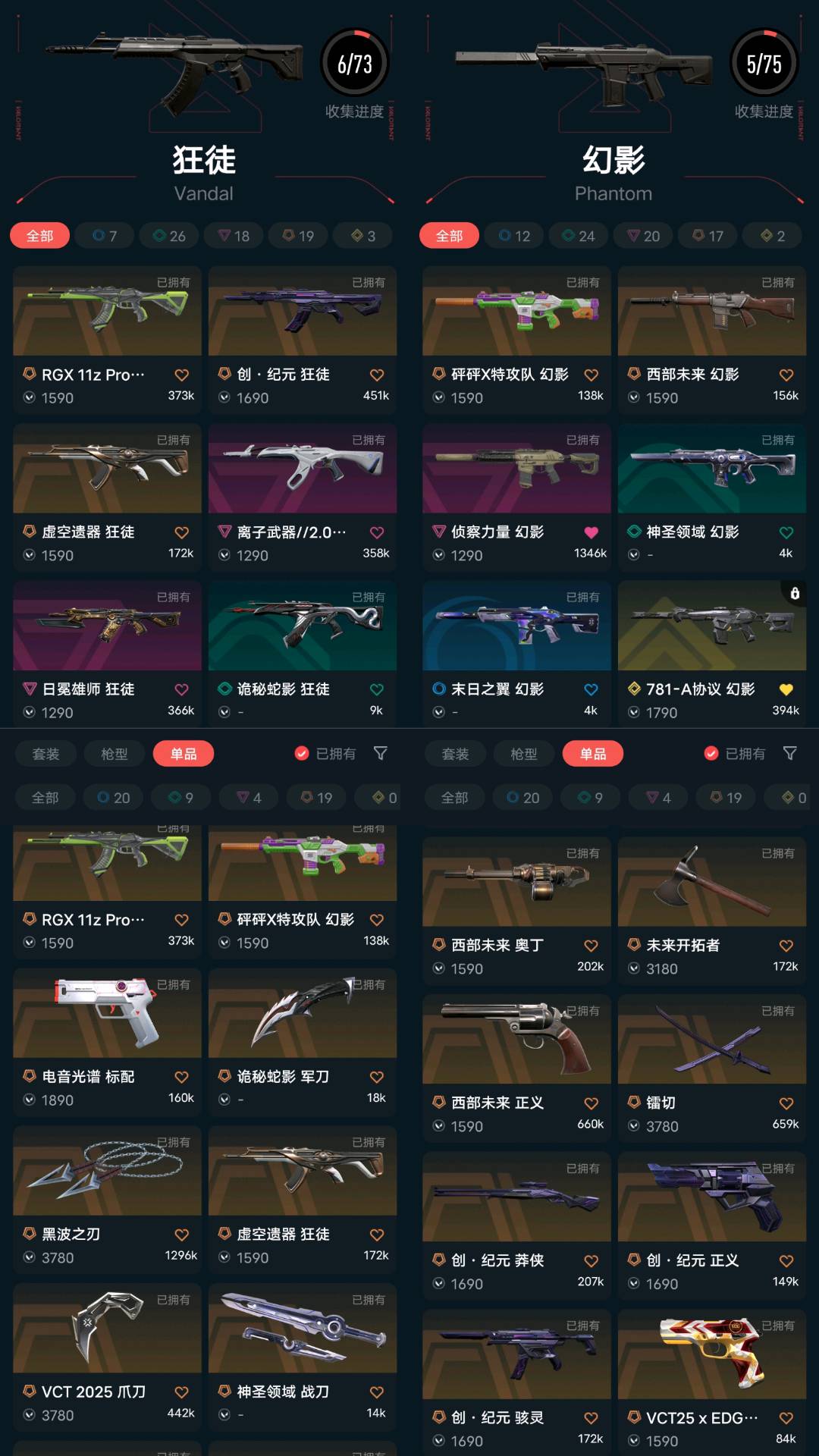 1;西部未来 奥丁,黑波之刃,镭切,VCT 2025 爪刀,虚空遗器 狂徒,侦察力量 幻影,RGX 11z Pro 狂徒,