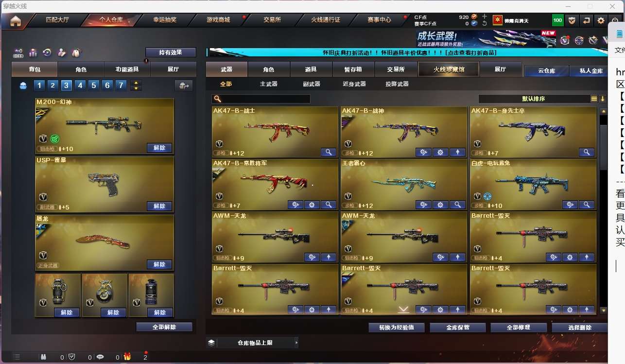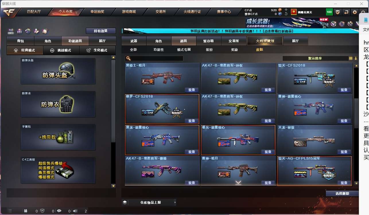 【亮点解析 四防装甲 竞技荣光 】 【24刀具:屠龙*6 龙啸*3 擎天 麒麟刺*6 尼泊尔雷霆 斩神女帝 幻神三件套 生化高配 】【四防传说女帝 】【m200幻神+音效卡+周瑜】【m200竞技荣光套+usp雷暴+四防云悠悠】【6盘龙 6烈龙 炼狱 死亡之眼】【scar白虎】【qbz金色蔷薇+ag19冠军】【hk417朱雀】【火麒麟+卡+cfs2018】【黑龙】【雷神+荣耀之魄】【黑骑士+卡+冠军之势】【毁灭+卡+荣耀之怒+ag15冠军】【极光】【裁决】 【武器:武圣 堕天神 王者之心 王者之翼 王者之魄 王者之幻 王者霜心 白虎电玩蓝兔 天龙 】 【10手呛:修罗*4 天神堕天神 雷暴 电竞刀雷暴 王者之刺 竞技荣光 】 【4雷套:雷霆雷 雷暴雷 竞技荣光雷*2】 【小人呛:cop白鲨】 【音效卡:火麒麟音效卡 黑骑士音效卡 幻神音效卡 毁灭音效卡 】 【四防角色:云悠悠 王者葵貂蝉 王者沙漠玫瑰 】;USP-雷暴,传说女帝,电竞教官-云悠悠,王者沙漠玫瑰,RPK-盘龙,QBZ03-金色蔷薇,M200-幻神,